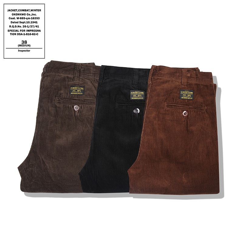 OKONKWO 가을과 겨울 새로운 아메리칸 스타일 레트로 캐주얼 스트레이트 카고 바지 남성용 두꺼운 코듀로이 바지스토어 가기