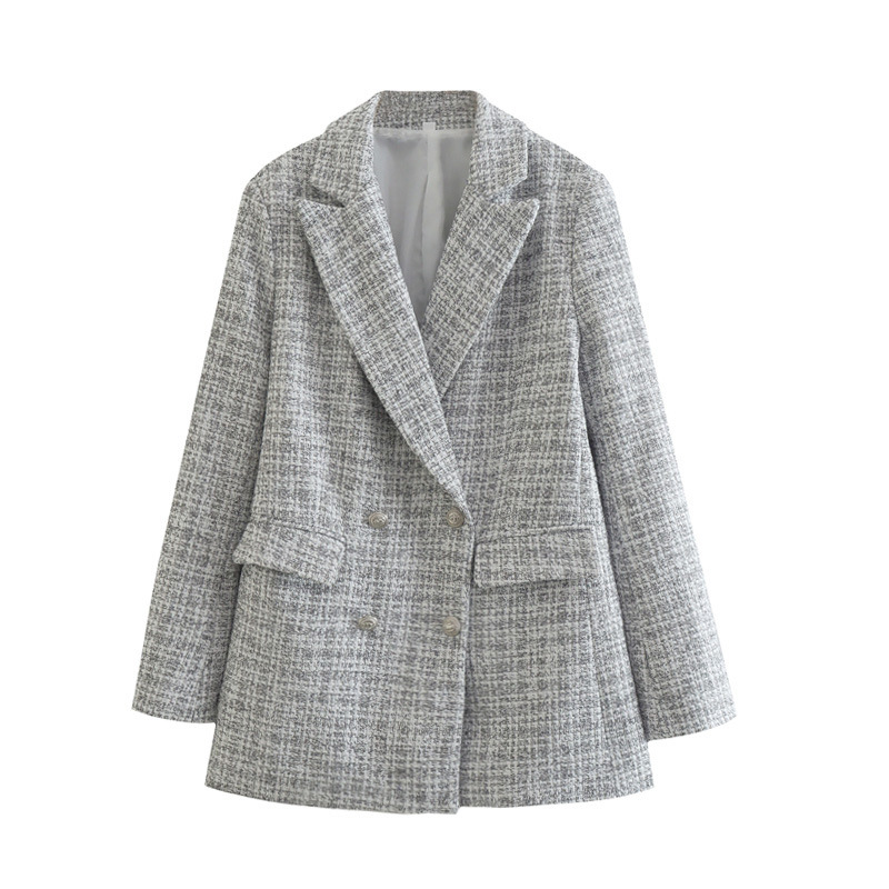 2021 가을 새로운 아마존 유럽과 미국 여성의 도매 트위드 포켓 장식 복고풍 긴 소매 세트 재킷스토어 가기