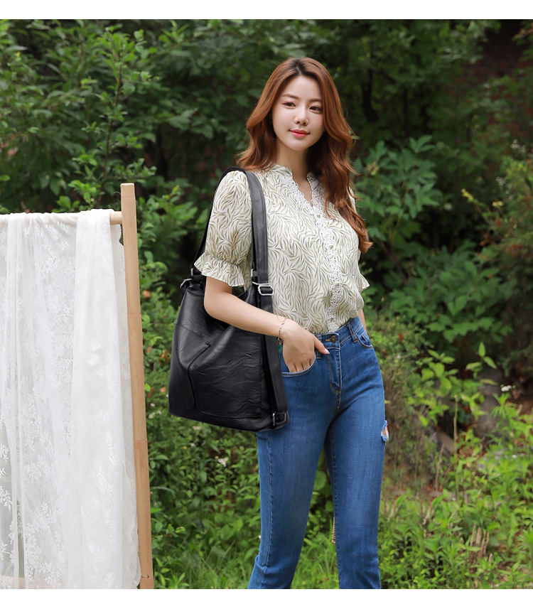 국경 간 토트 백 유럽과 미국의 어깨 크로스 바디 백 대용량 캐주얼 여행 배낭 여성용 다목적 pu 배낭스토어 가기