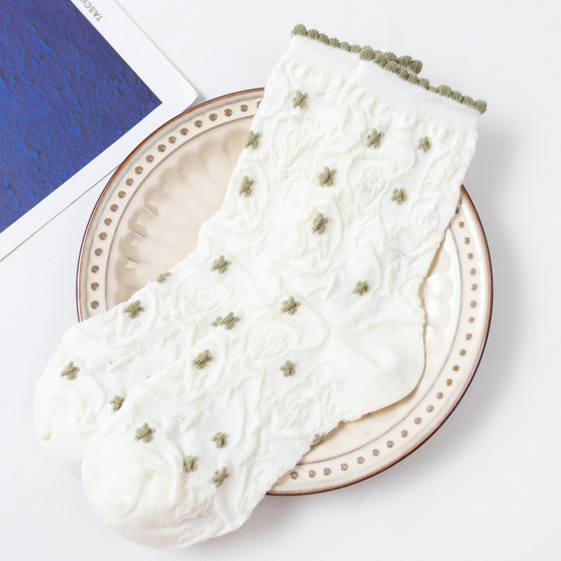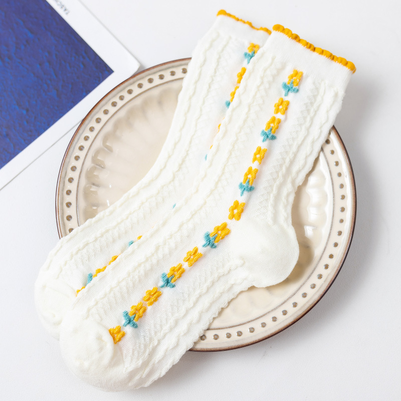 가을 겨울 양말 여성용 인스 트렌드 귀여운 일본 레트로 꽃무늬 중간 길이 면 양말 화이트 다용도 버블 양말스토어 가기