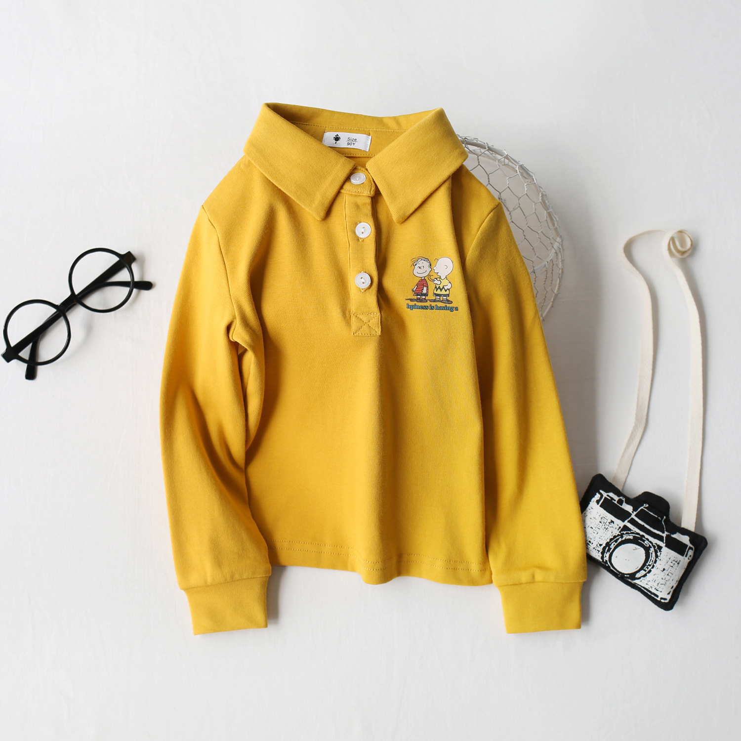 어린이 봄, 가을 대학 스타일 폴로 셔츠 2025 남성과 여성의 아기 긴팔 옷깃 탑 서양식 솔리드 컬러 셔츠스토어 가기