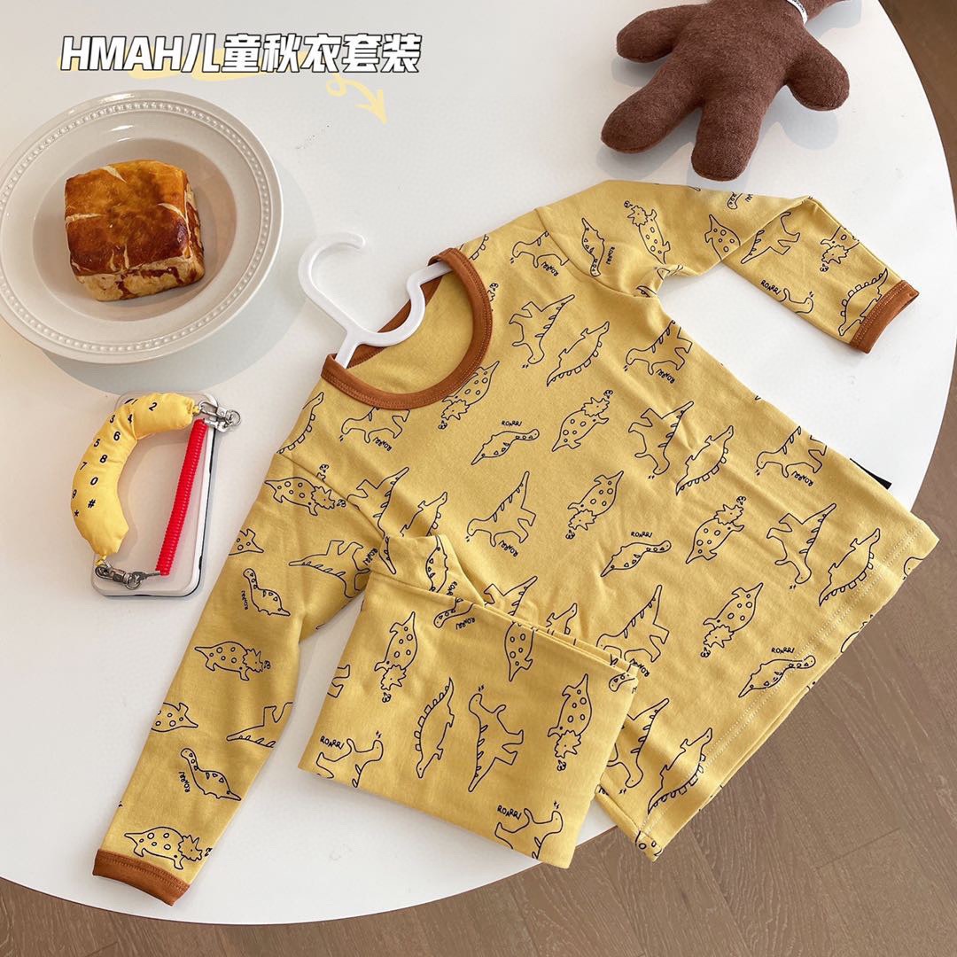 봄가을 아동용 순면 100a 등급 가을옷 남아 여아 아기 분리형 잠옷 보온 내의 세트 면 스웨터