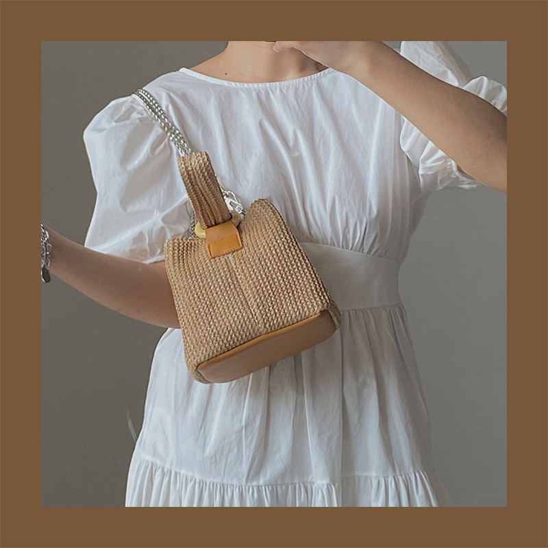 소녀들을 위한 귀여운 휴대용 밀짚 가방, 2026년 신상, 개성 있는 여름 체인백, 숄더백, 유행하는 뜨개질 가방