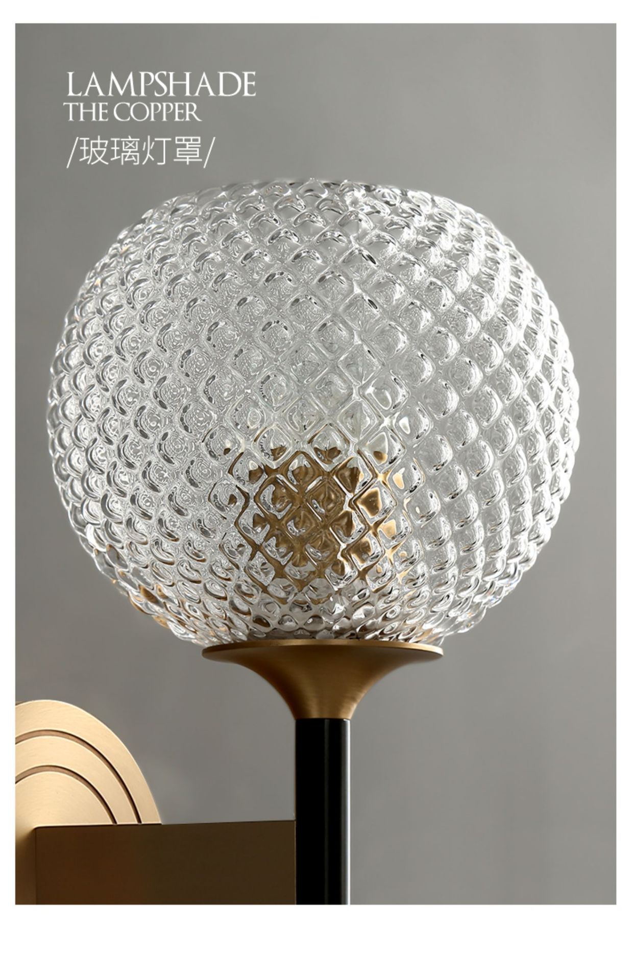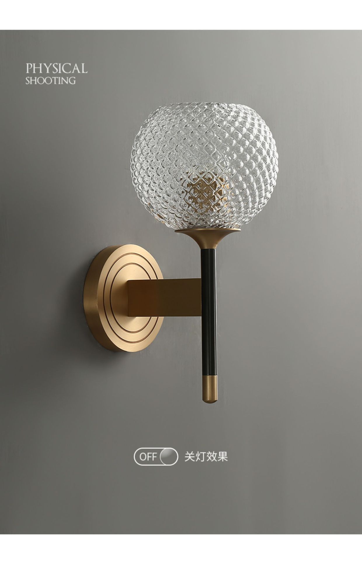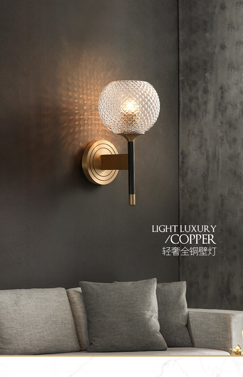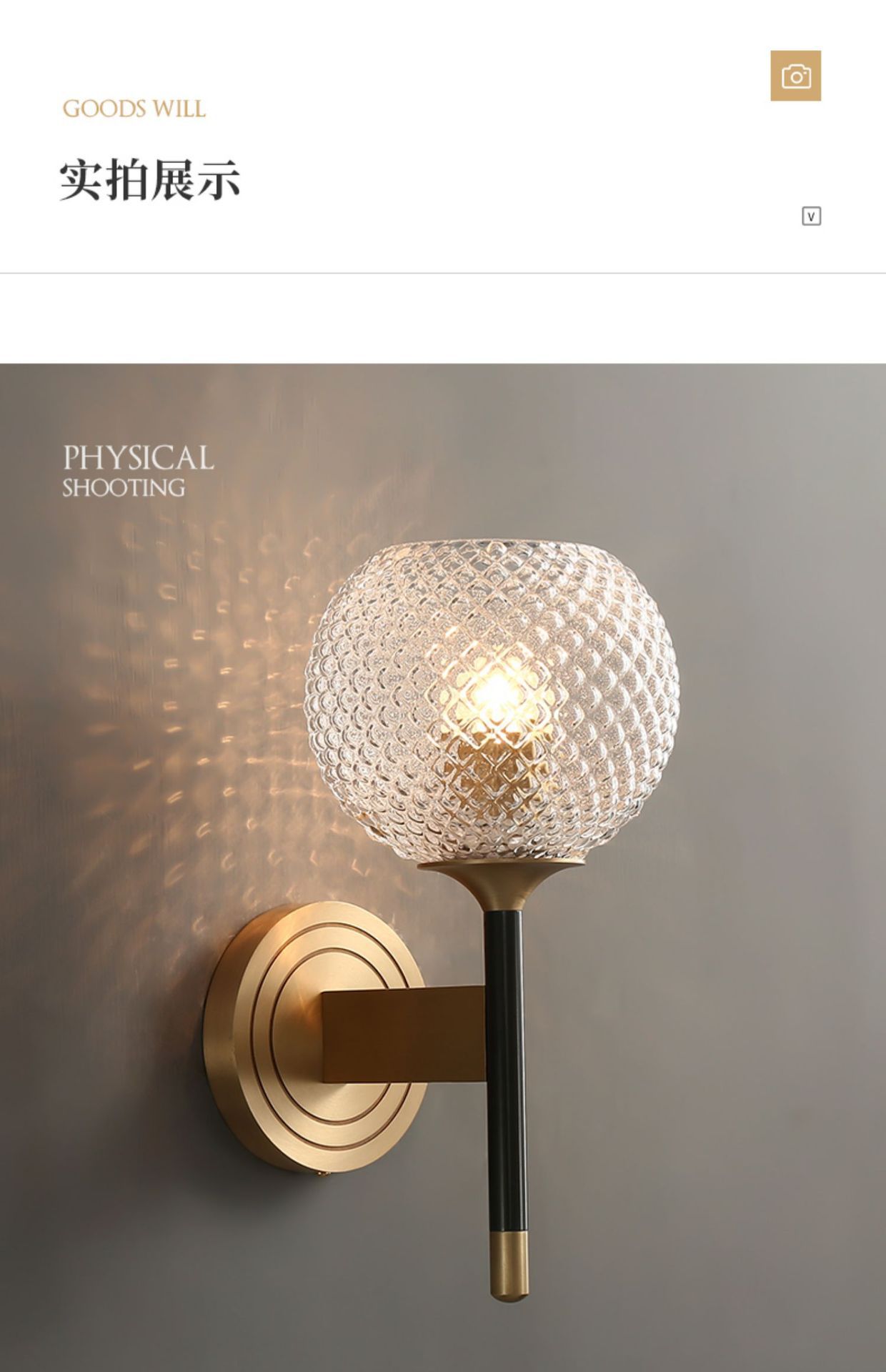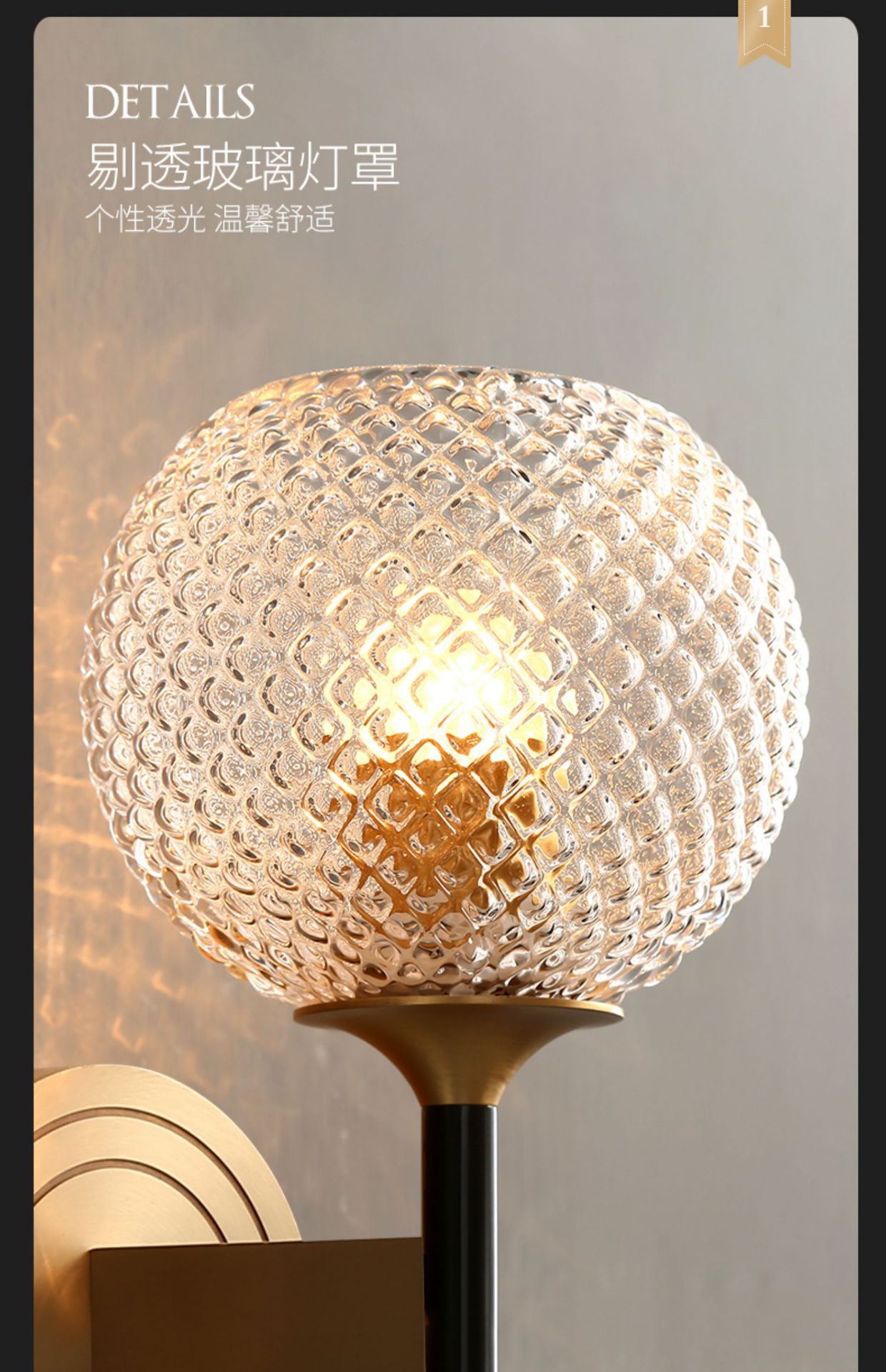 美式轻奢简约客厅背景墙铜壁灯室内单头双头壁灯卧室玻璃全铜壁灯