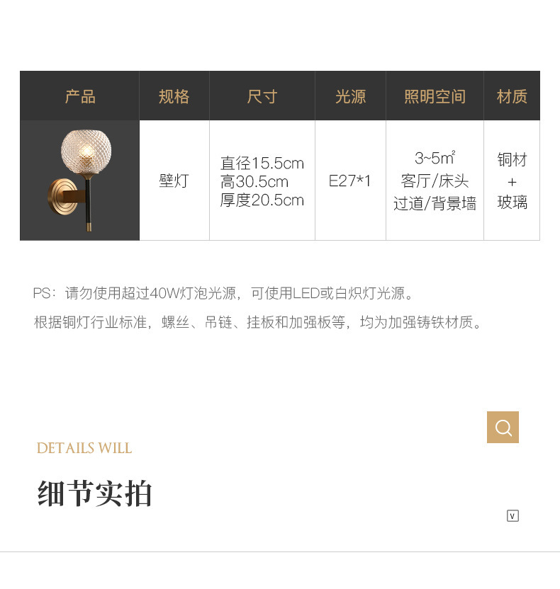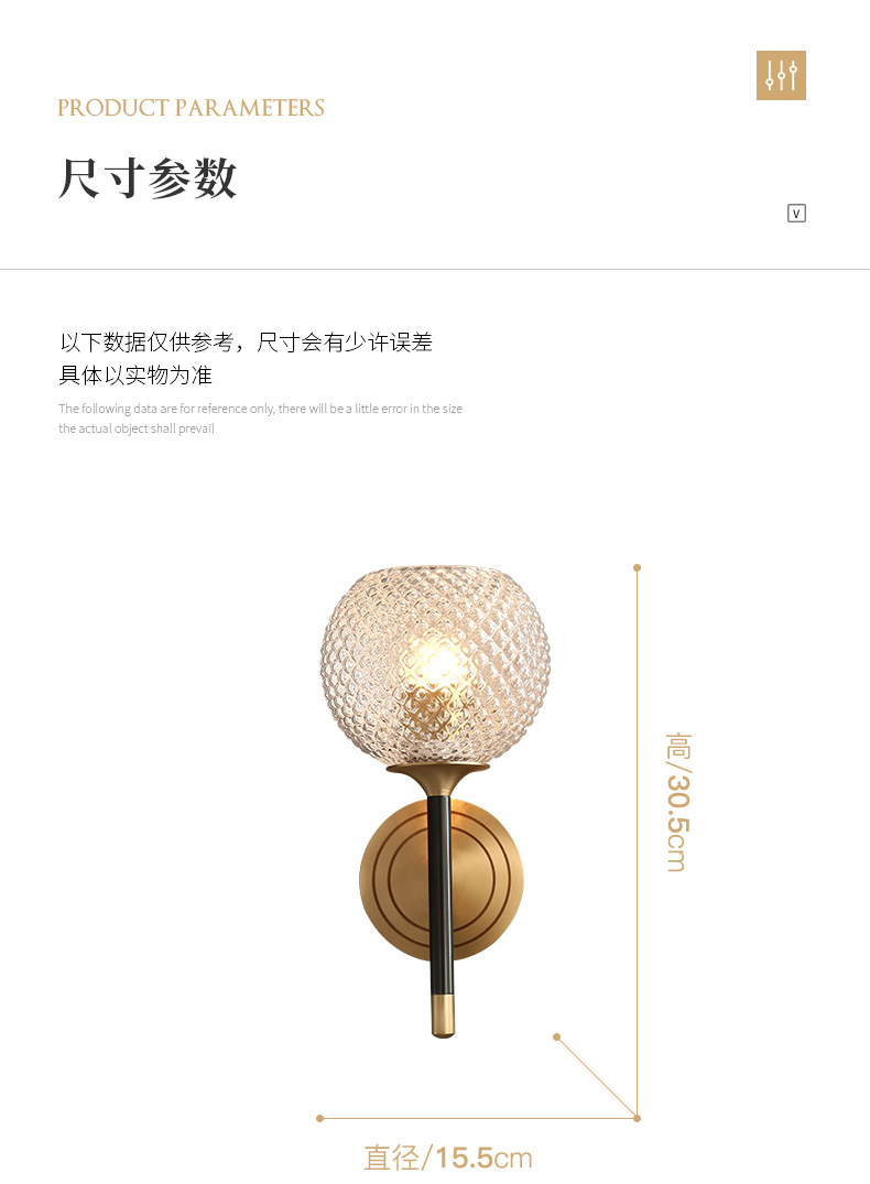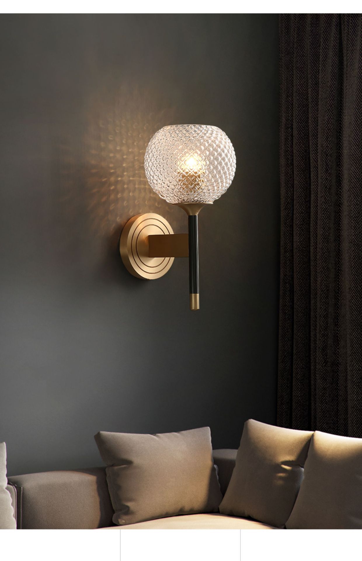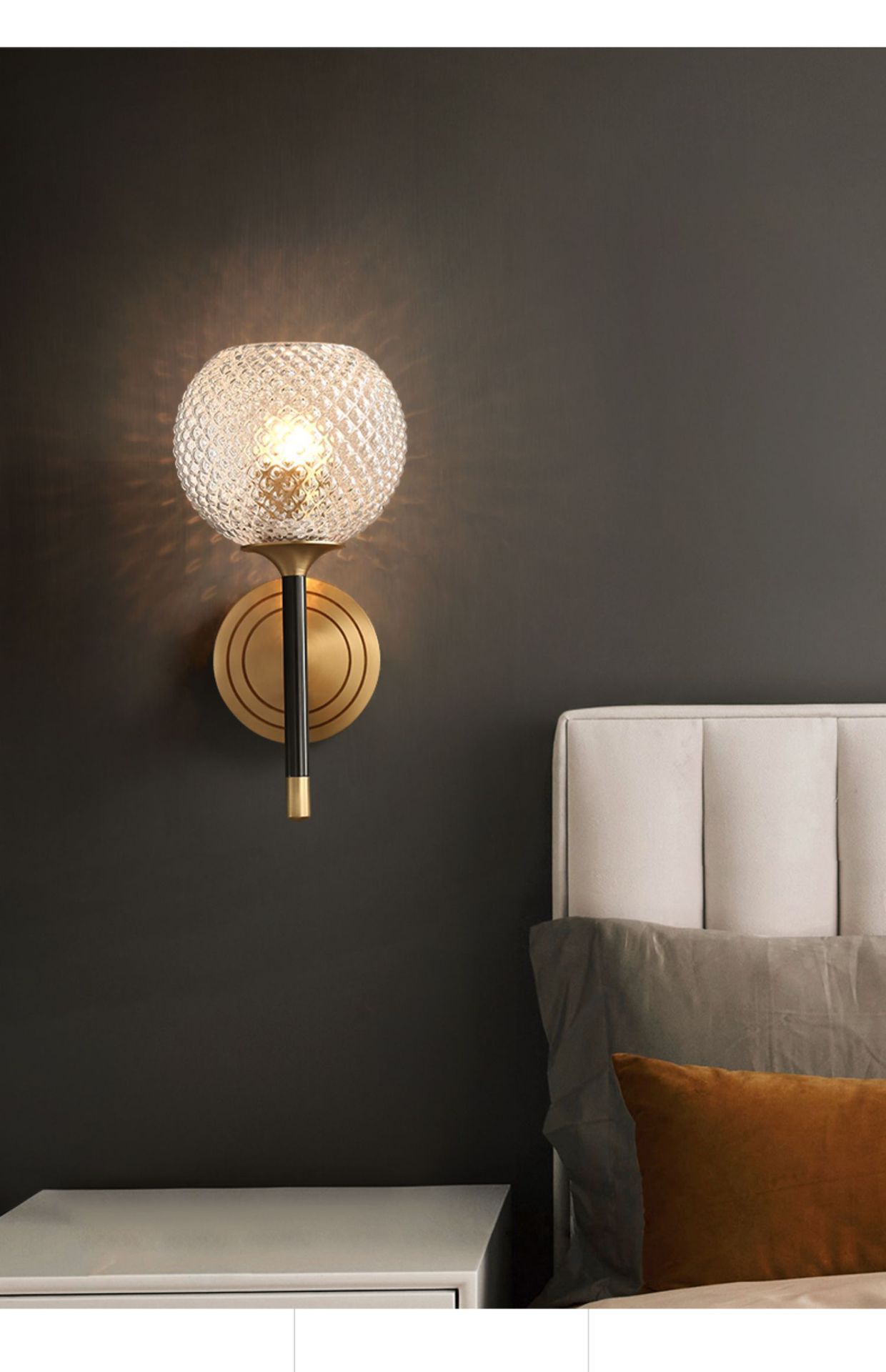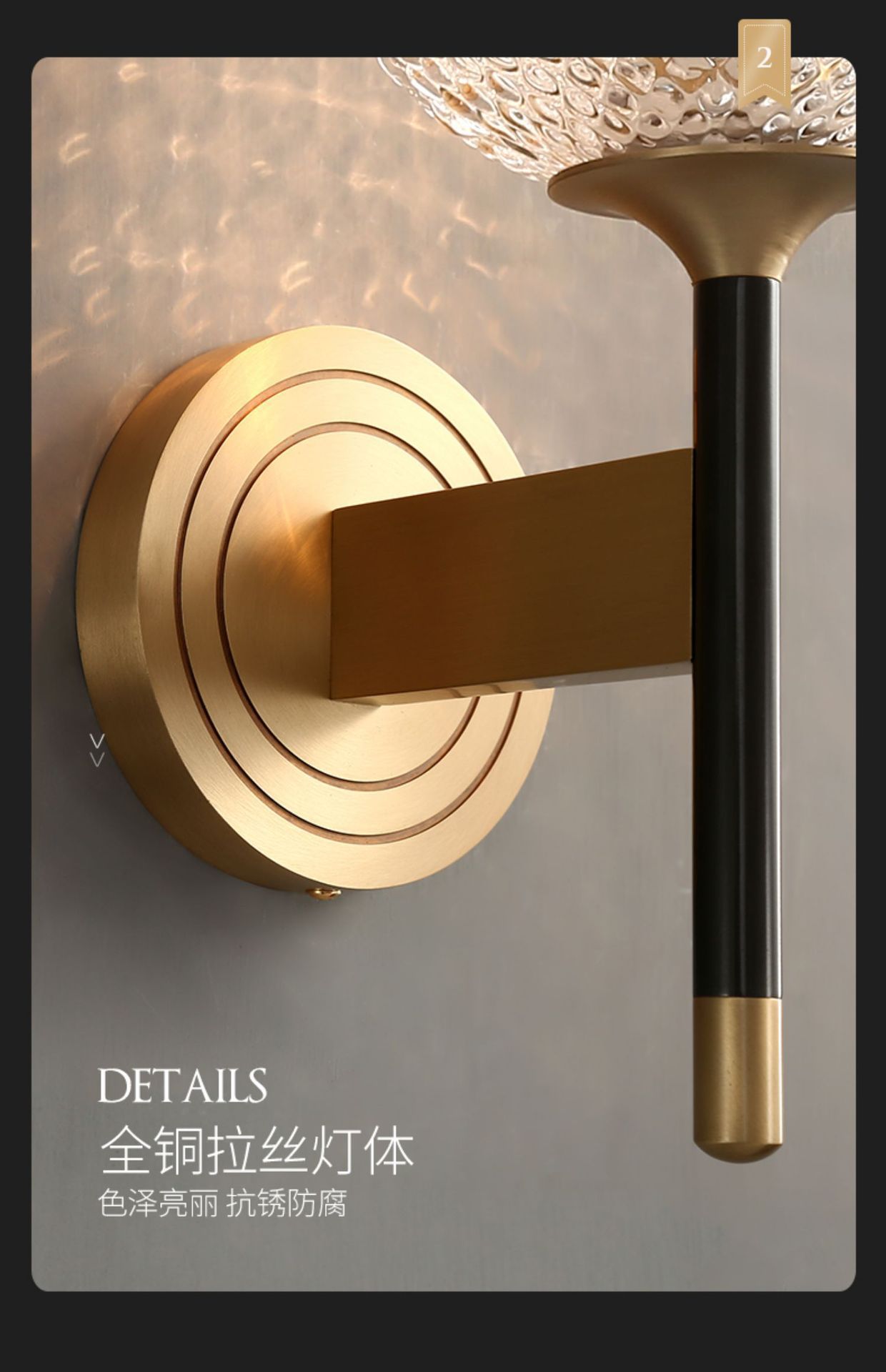 美式轻奢简约客厅背景墙铜壁灯室内单头双头壁灯卧室玻璃全铜壁灯