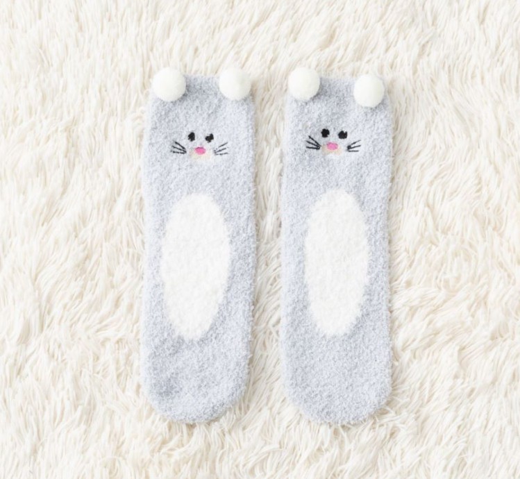 가을과 겨울 새로운 여성 양말 만화 자수 산호 벨벳 양말 홈 플로어 양말 두꺼운 따뜻한 여성 양말 도매스토어 가기