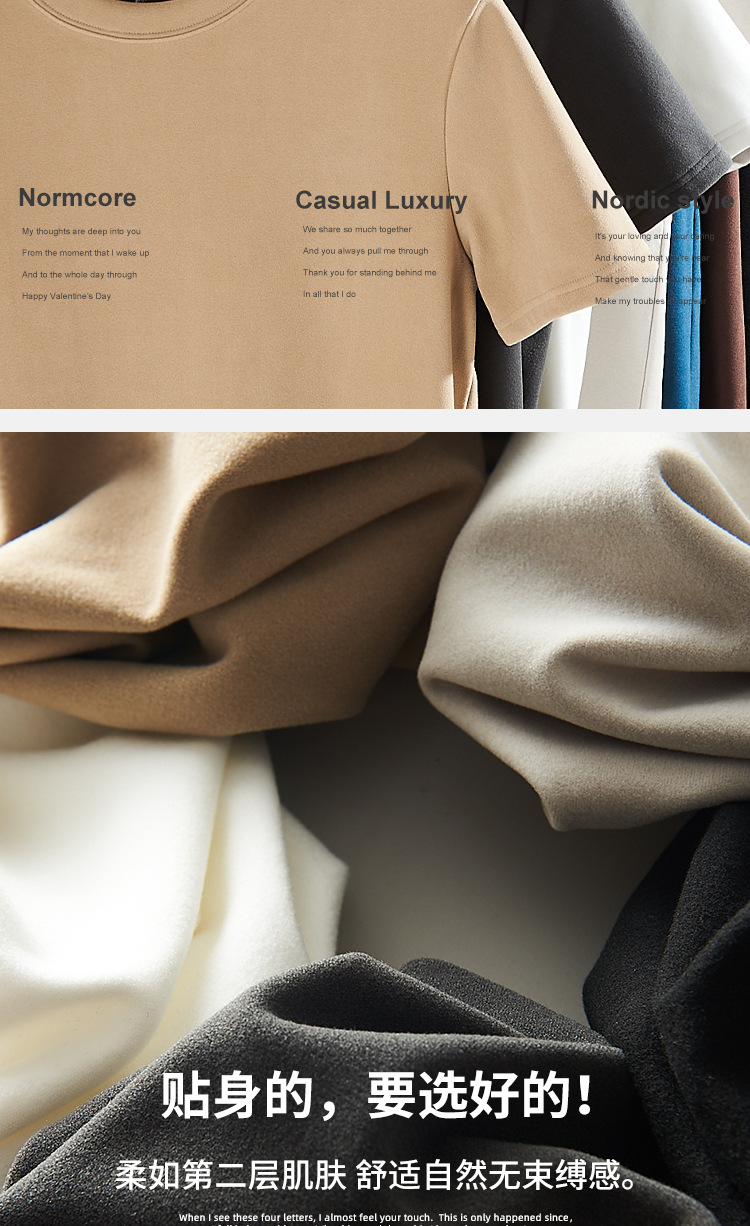 양면 벨벳 반팔 남성 가을과 겨울 하의 남성용 블랙 벨벳 라운드 넥 화이트 하의 셔츠 트렌디