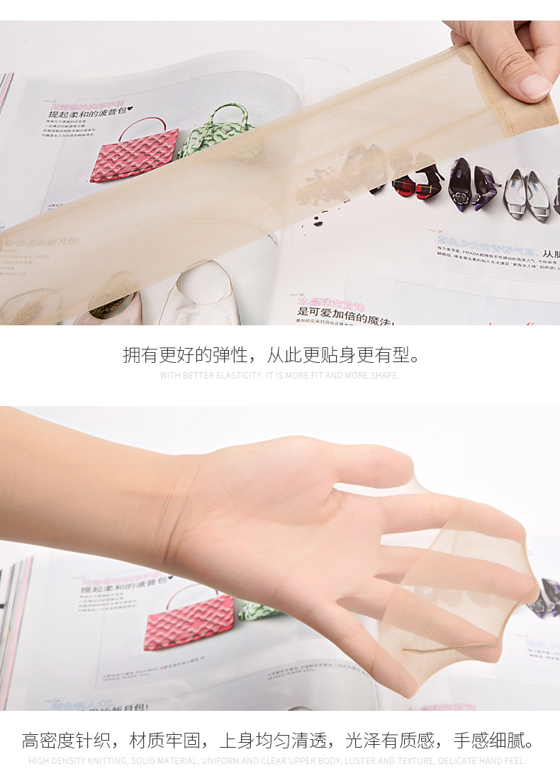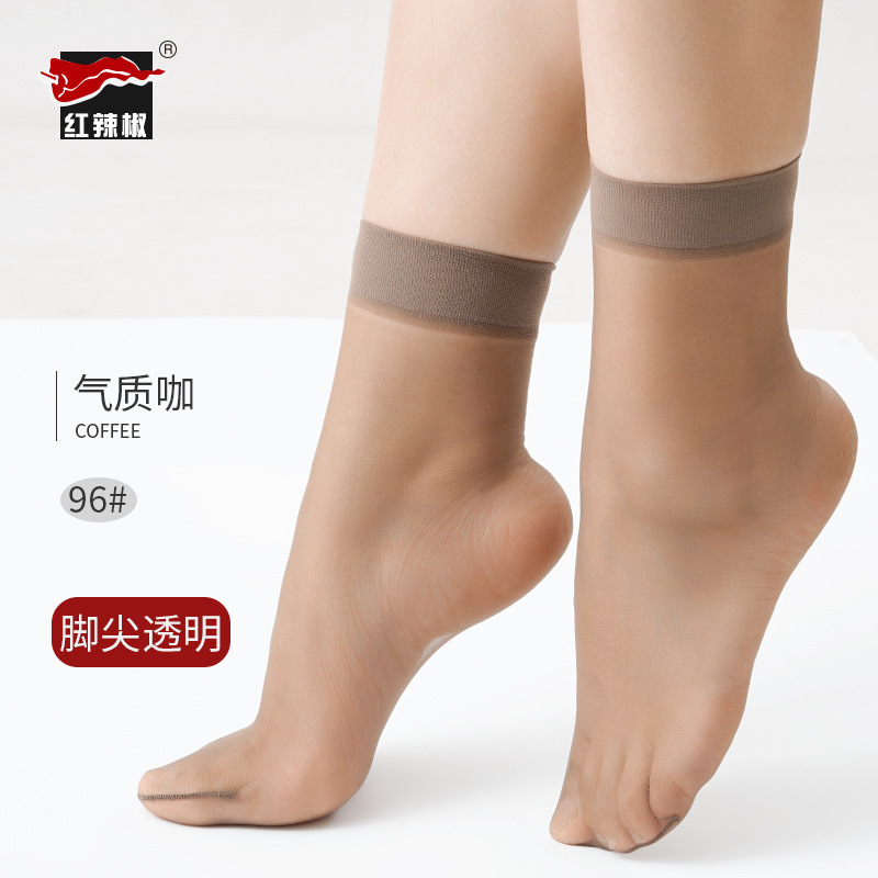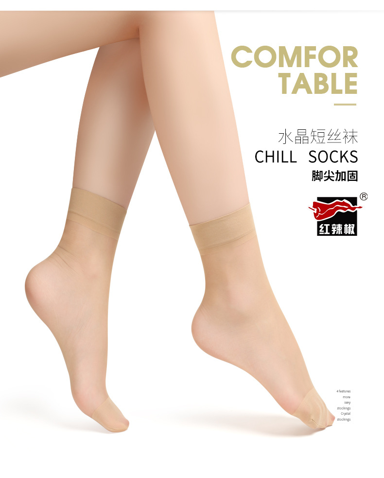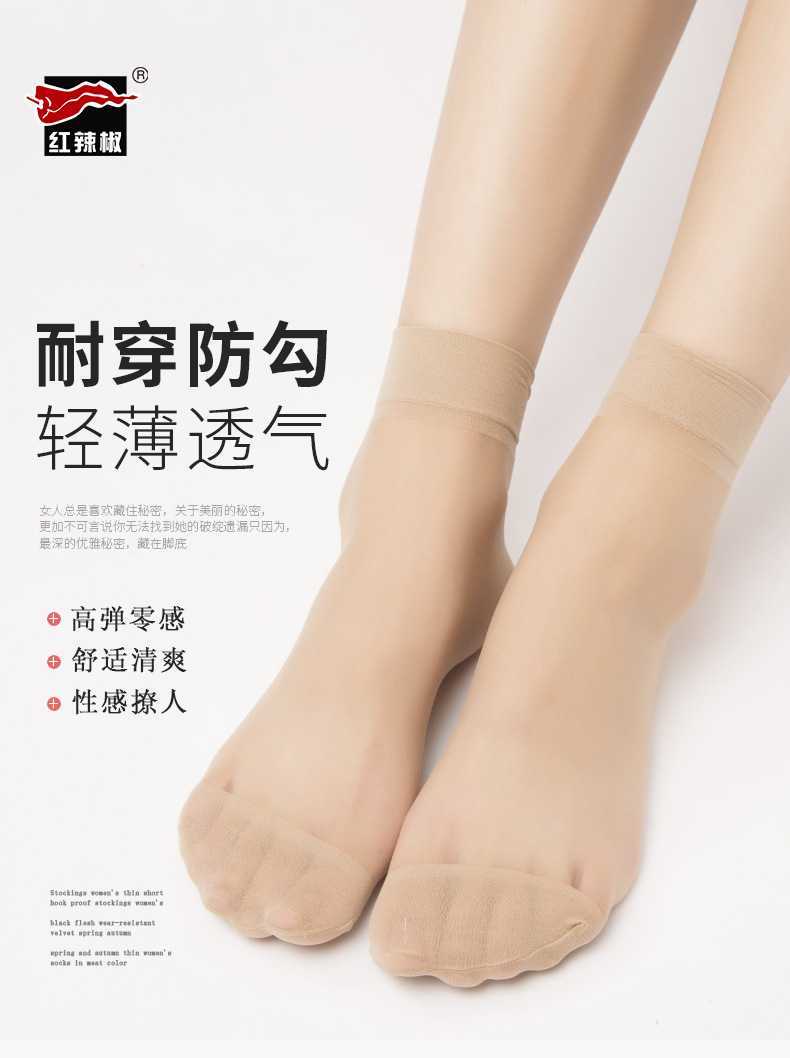 레드 페퍼 실크 스타킹 짧은 여성의 초박형 안티 후크 내마모성 크리스탈 스타킹 여름 보이지 않는 투명한 육종 통기성 짧은 실크 스타킹스토어 가기