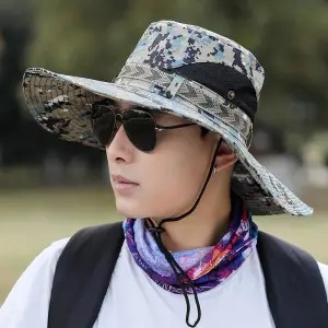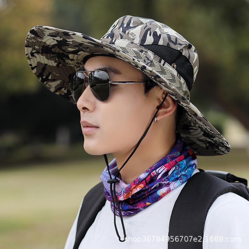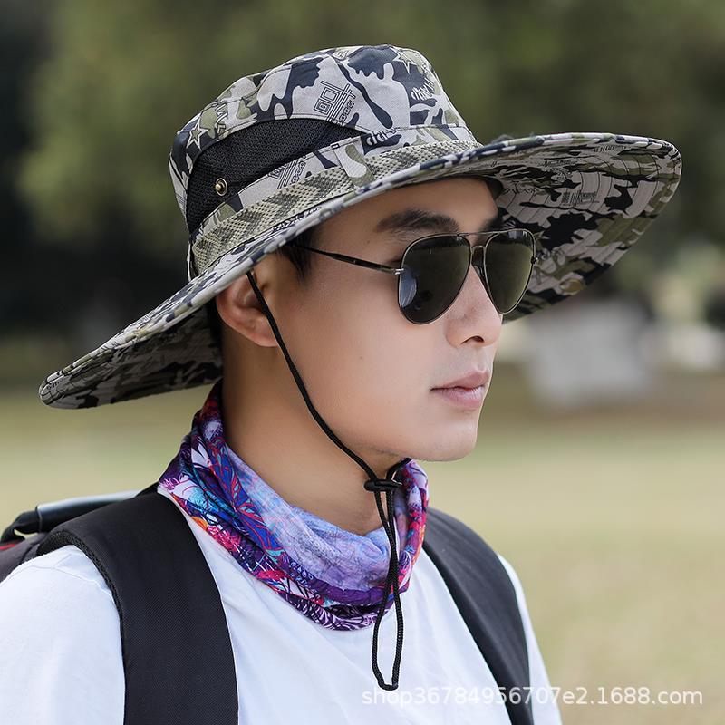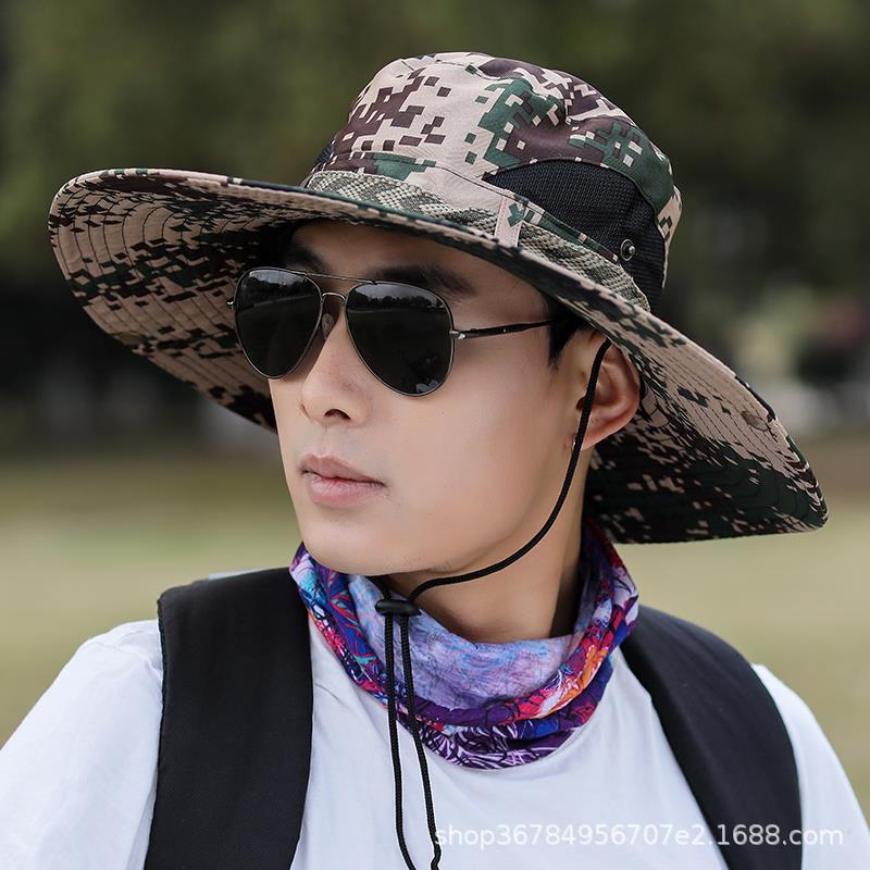 낚시 모자 남성용 차양 모자 야외 등산 작업 어부 모자 위장 큰 가장자리 여름 자외선 차단제 태양 모자