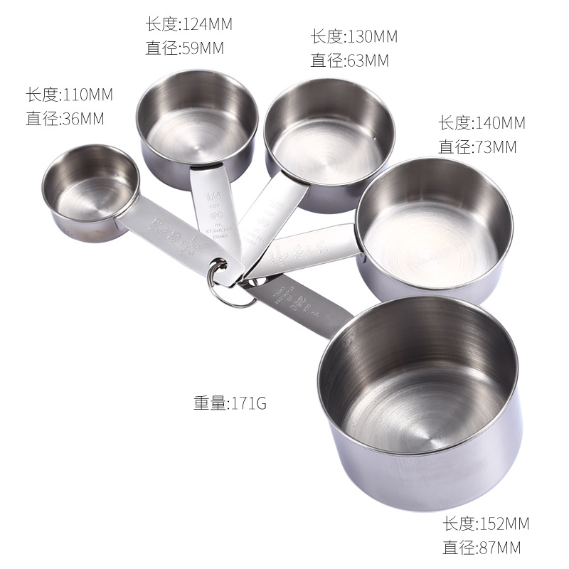 크로스 보더 스테인레스 스틸 측정 컵 5 개 세트 430 스테인레스 스틸 측정 컵 계량 스푼 세트 스케일 베이킹 도구