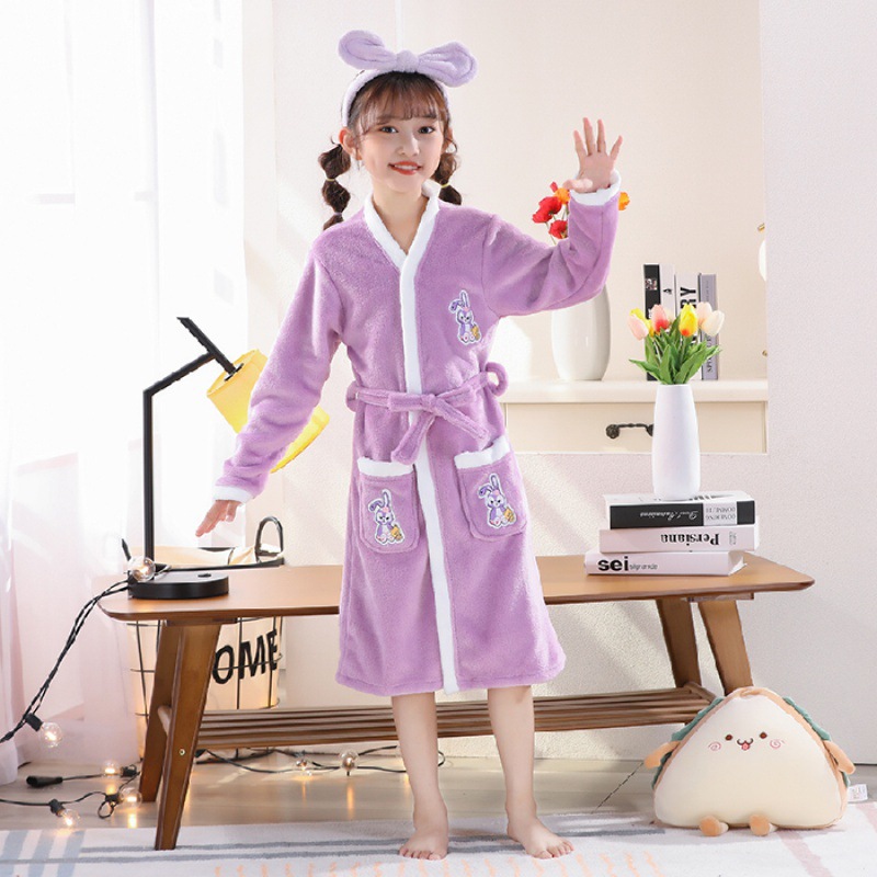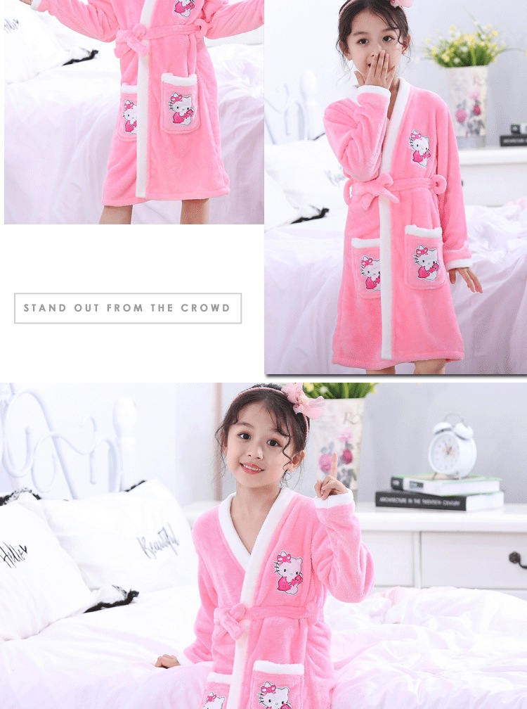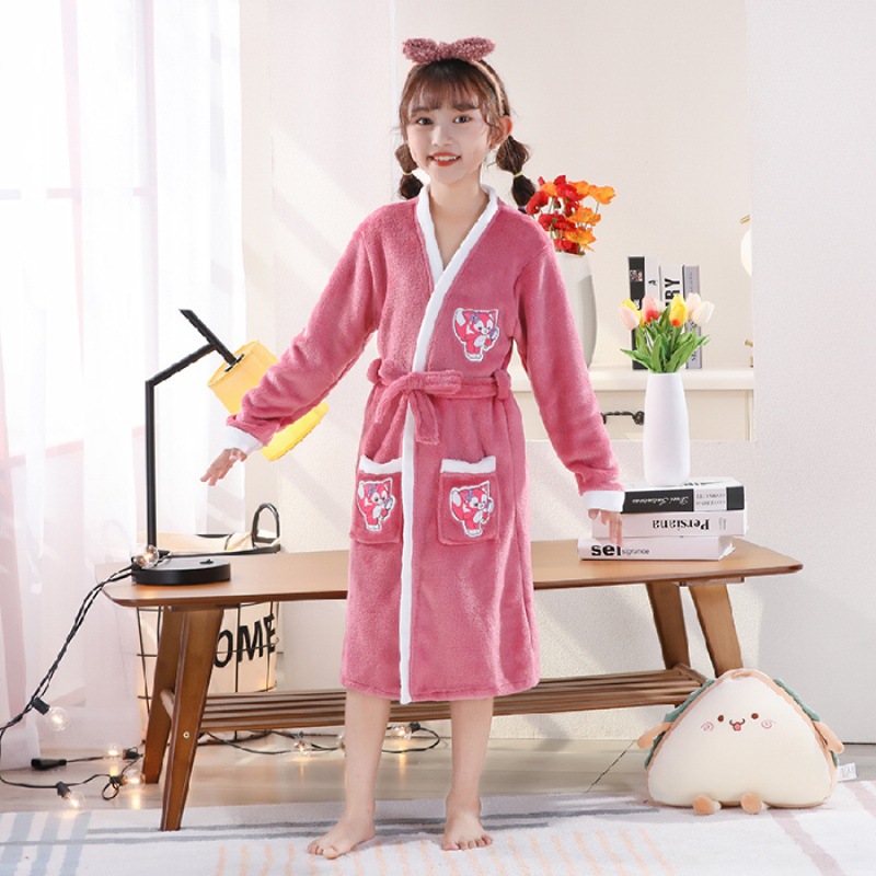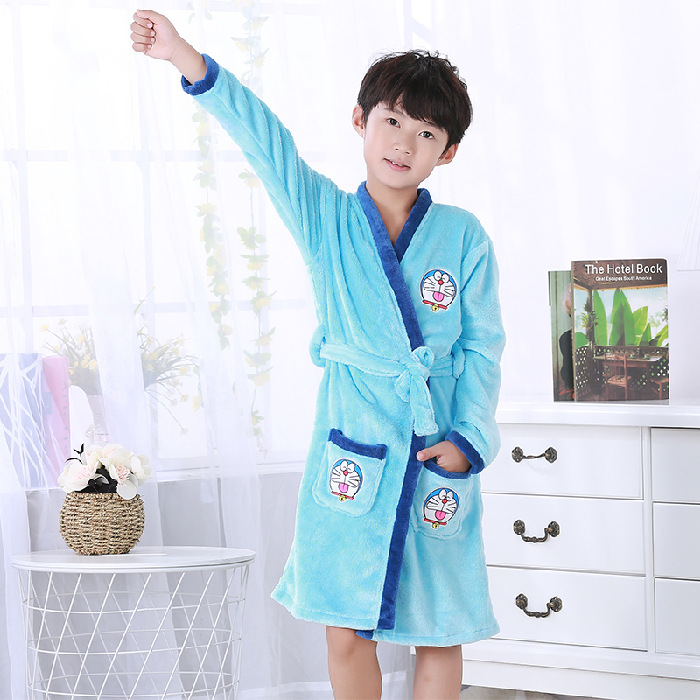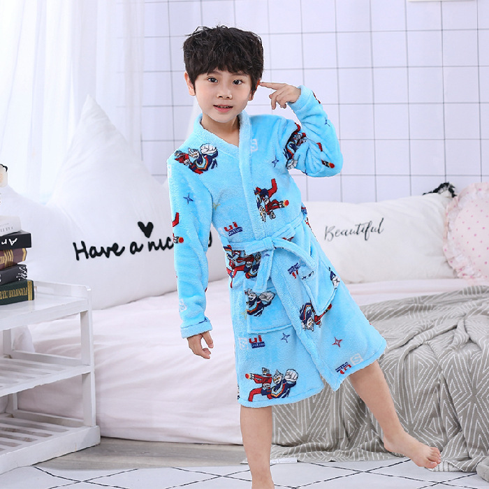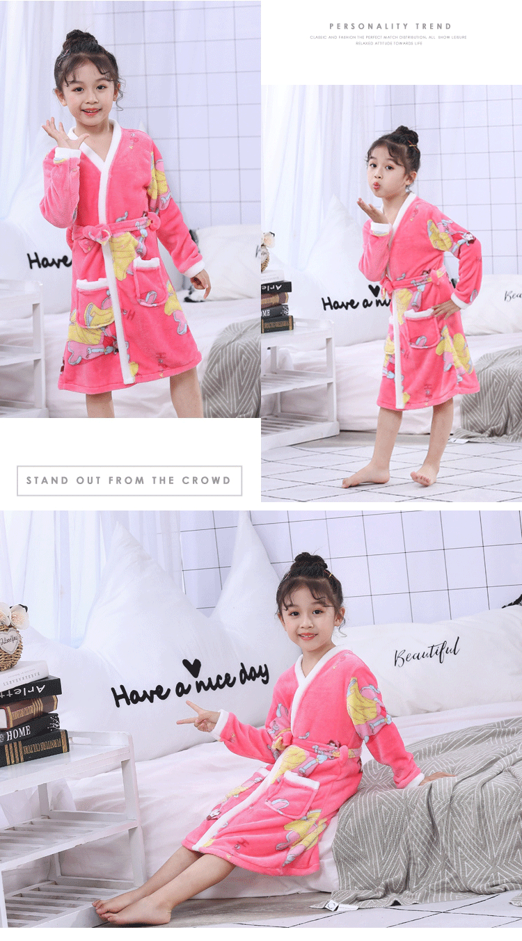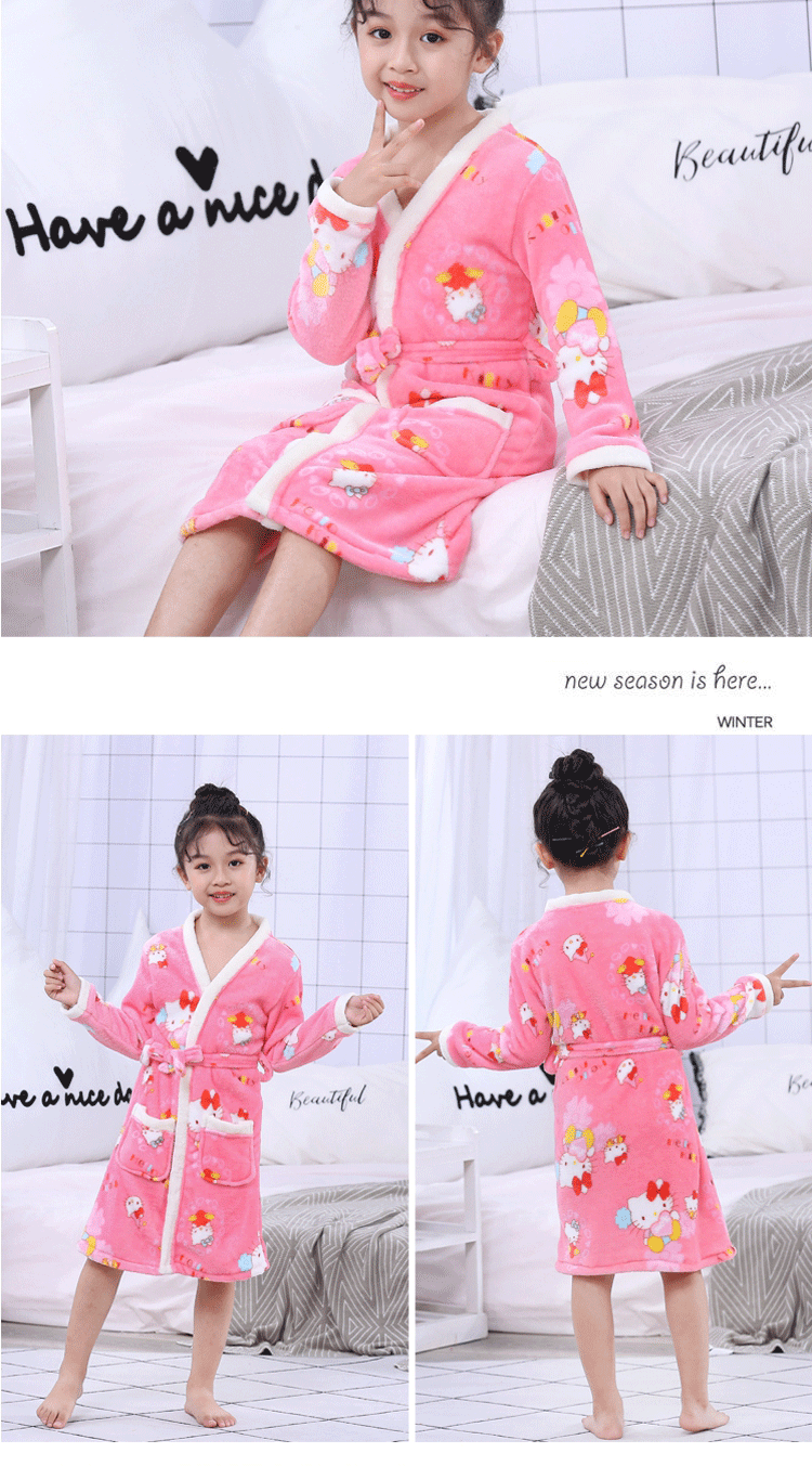 2024 가을 겨울 아동용 잠옷 만화 두꺼운 플란넬 잠옷 남아 여아용 목욕 가운 홈웨어