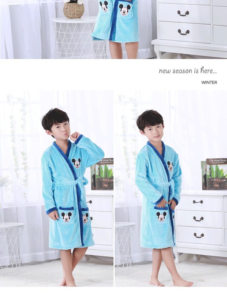2024 가을 겨울 아동용 잠옷 만화 두꺼운 플란넬 잠옷 남아 여아용 목욕 가운 홈웨어스토어 가기