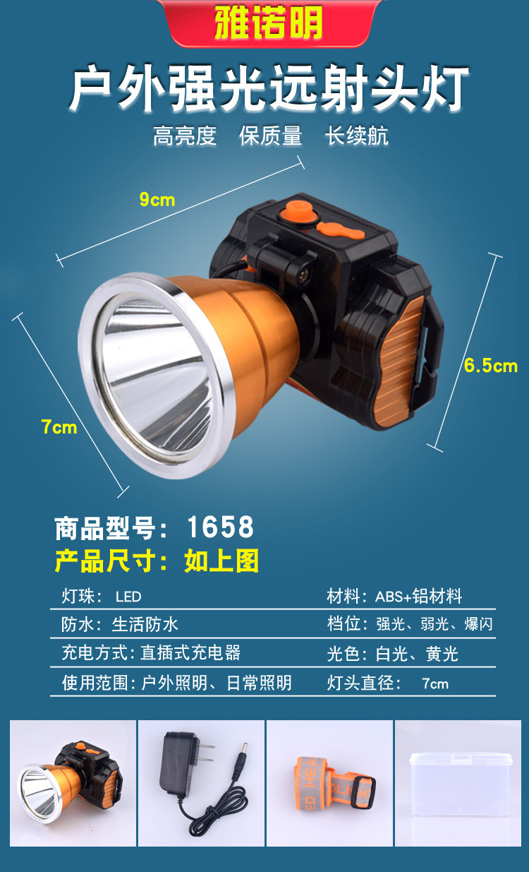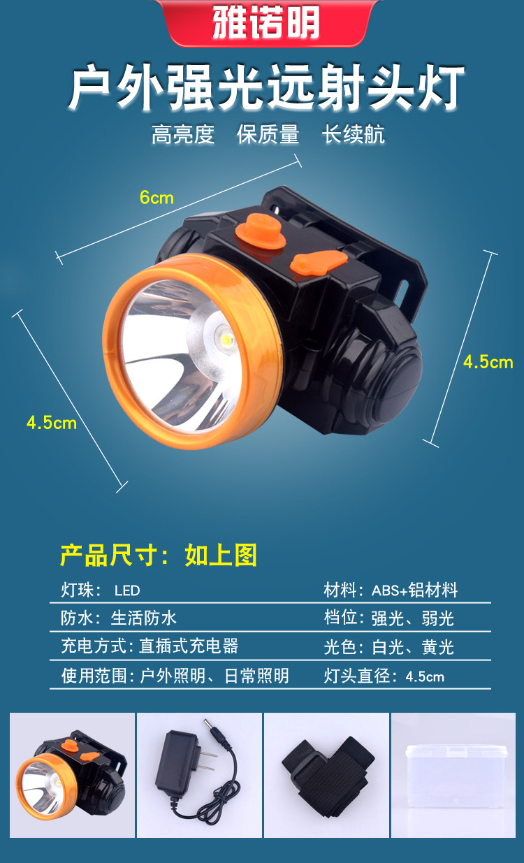 • 15W 화이트 라이트 [충전기 + 전조등 스트랩 + 플라스틱 박스 보내기] 배터리 수명 4-5 시간