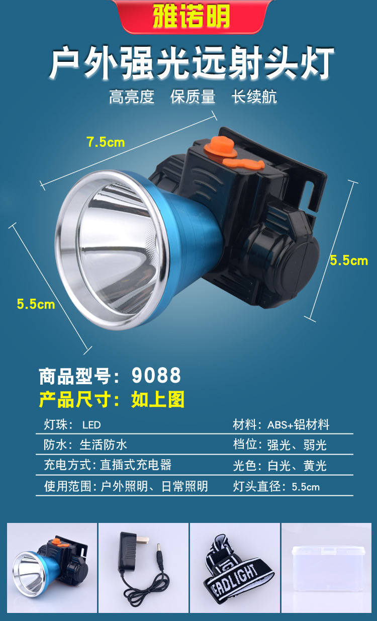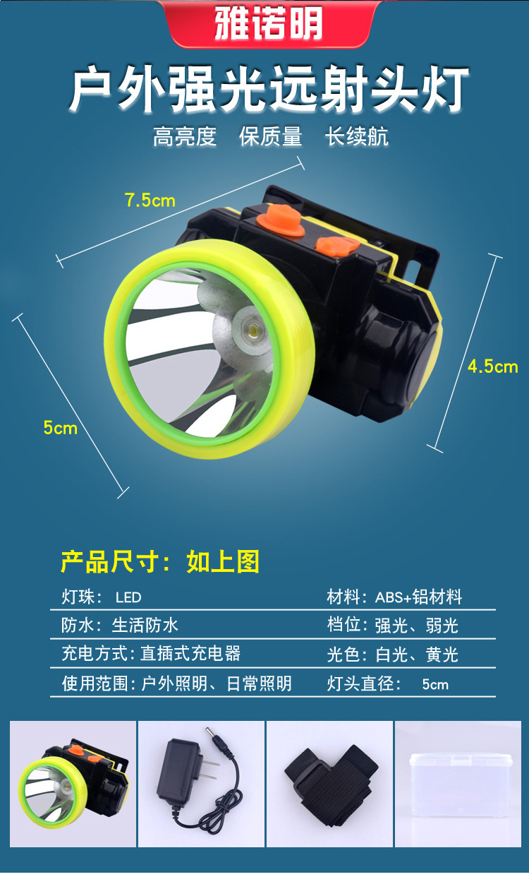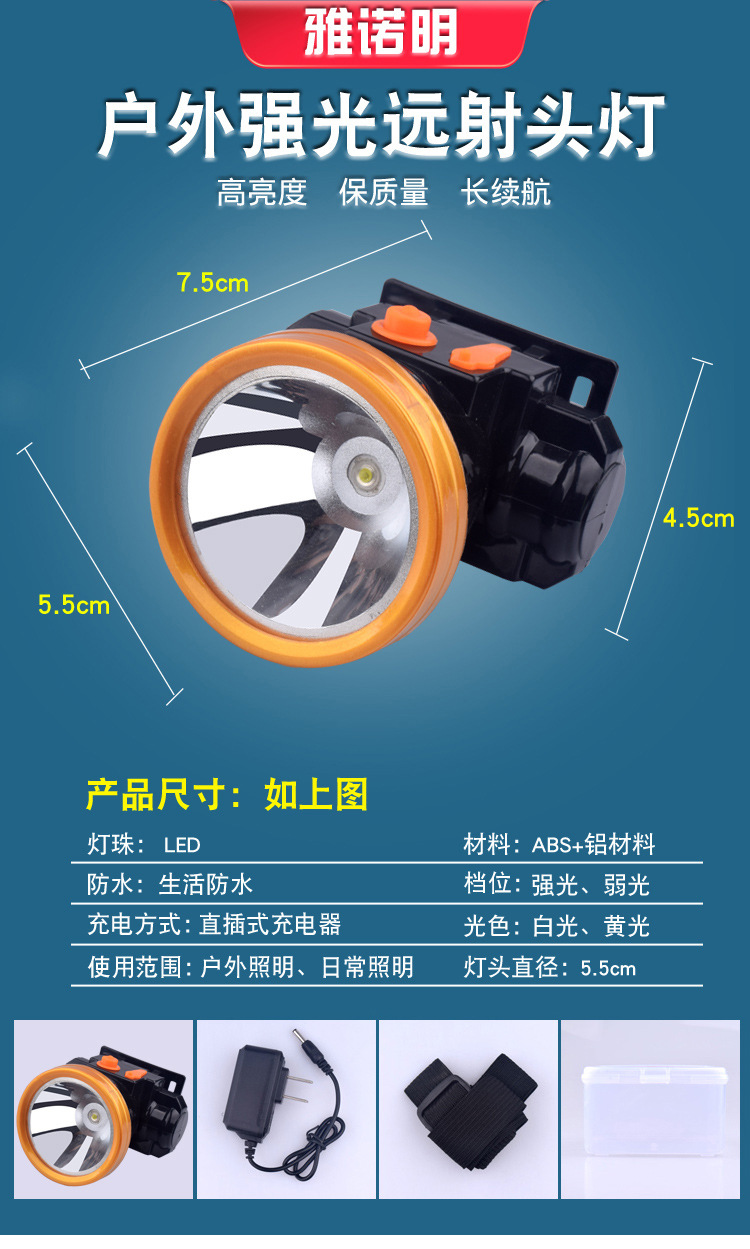 • 대구경 헤드 50W 화이트 라이트 [충전기 보내기 + 전조등 스트랩 + 플라스틱 박스] 내구성 7-8 시간