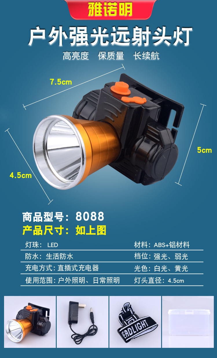 • 알루미늄 합금 헤드 50W 화이트 라이트 [충전기 + 전조등 스트랩 + 플라스틱 박스 보내기] 배터리 수명 6-7 시간
