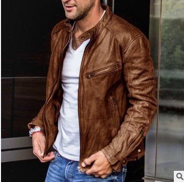 대외 무역 남성용 가죽 2021 가을과 겨울 새로운 단색 캐주얼 지퍼 장식 PU 가죽 자켓 남성용스토어 가기