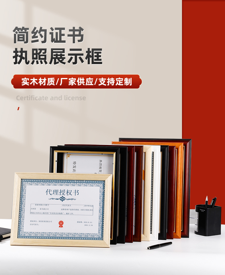 단단한 나무 사진 프레임 테이블 A4 나무 액자 비즈니스 라이센스 프레임 공인 라이센스 프레임 벽걸이 유화 프레임 서예 및 그림스토어 가기