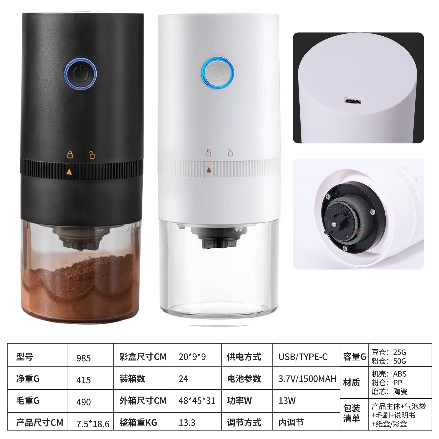 국경 간 휴대용 전기 콩 분쇄기 커피 머신 USB 충전식 커피 밀 전기 커피 분쇄기 커피 콩 분쇄기 New