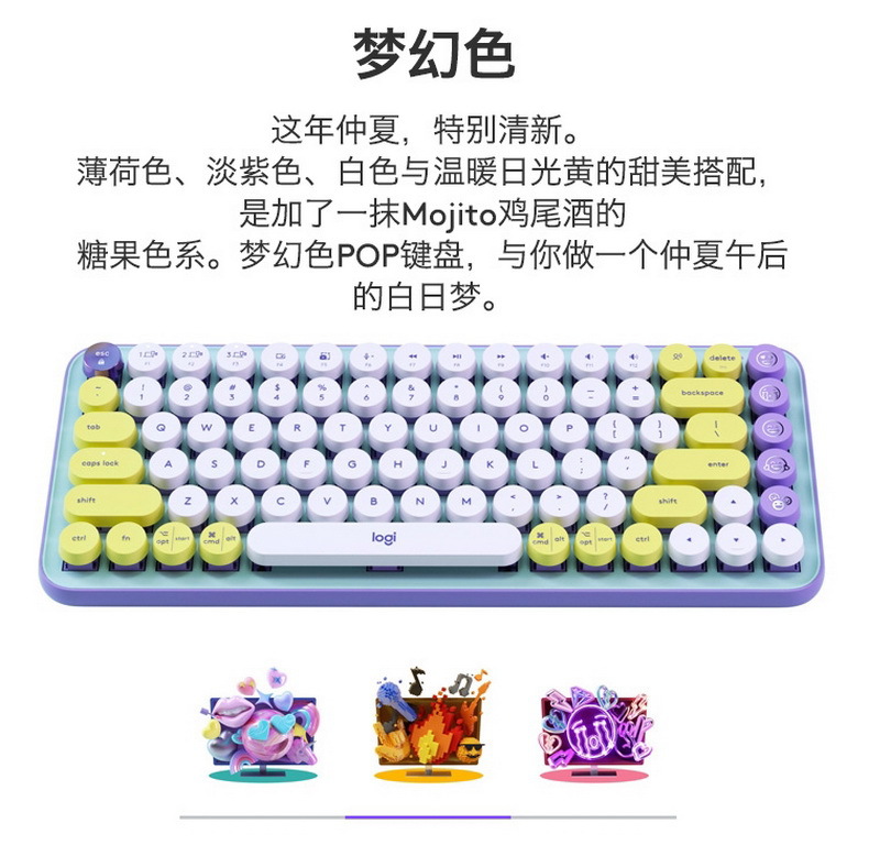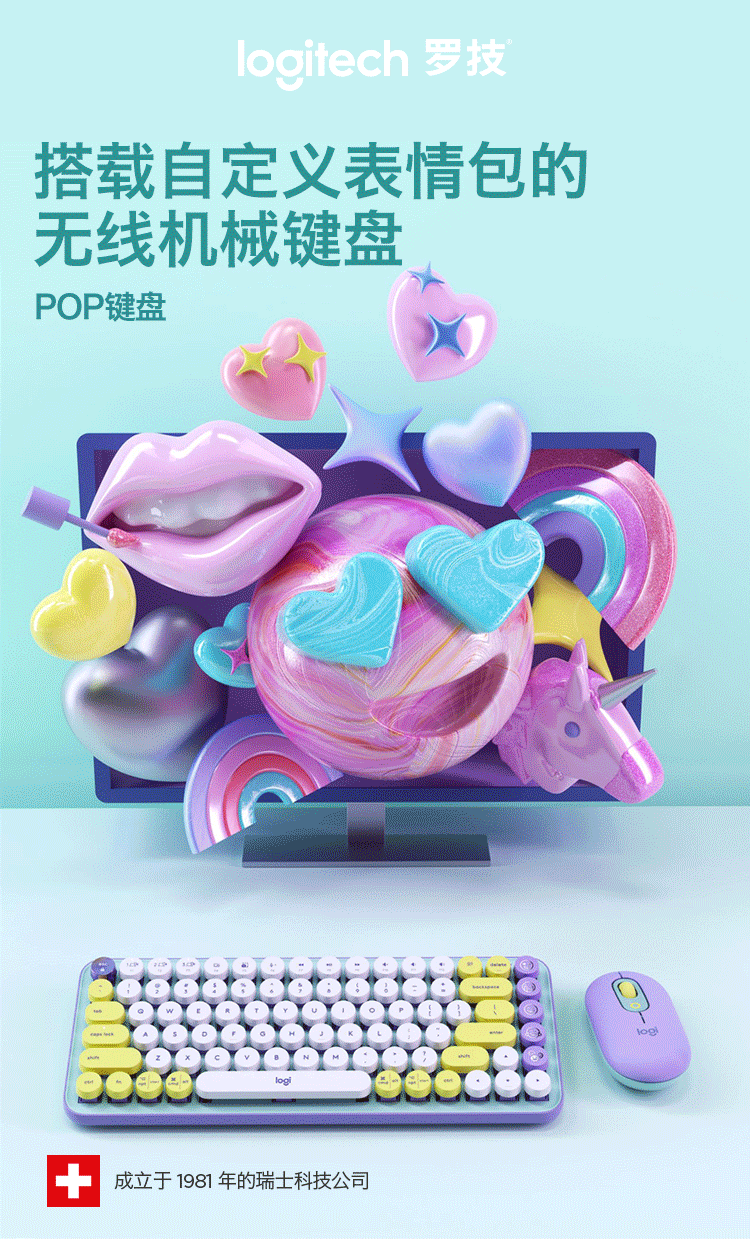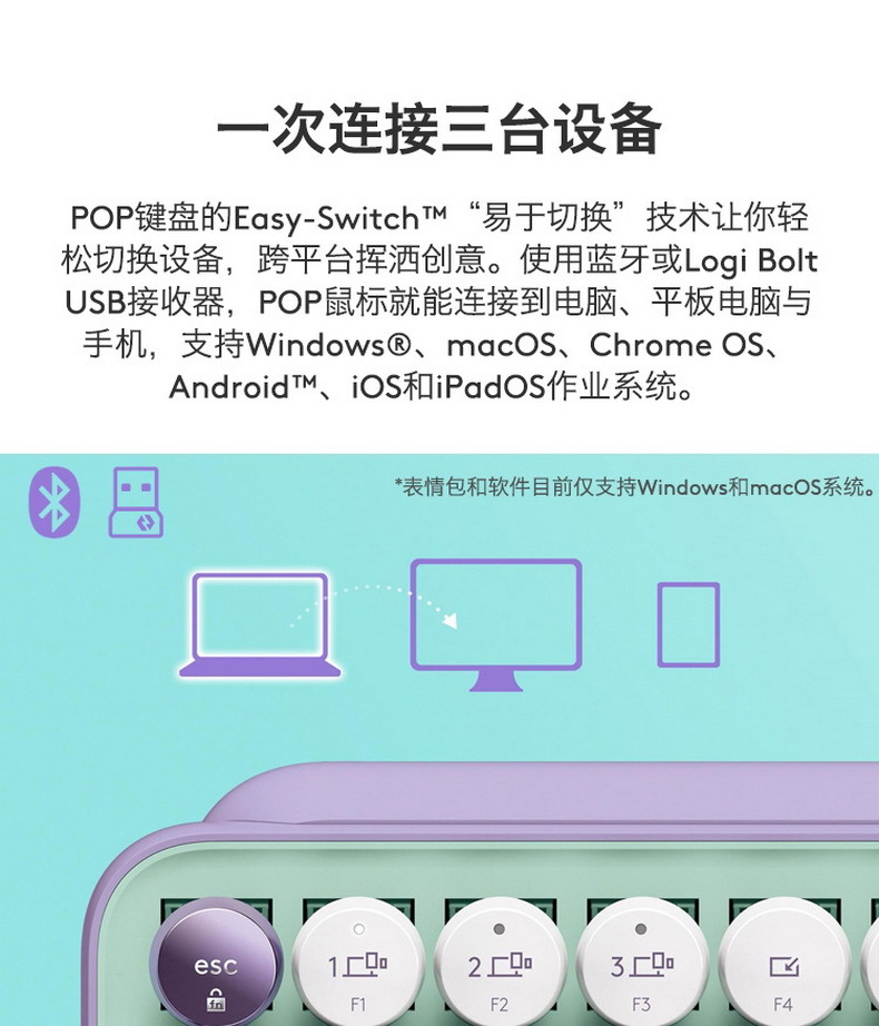 로지텍/로지텍 크로스보더 POP 키즈 듀얼 모드 기계식 키보드, 개성 넘치는 버블 87키 휴대용 키보드
