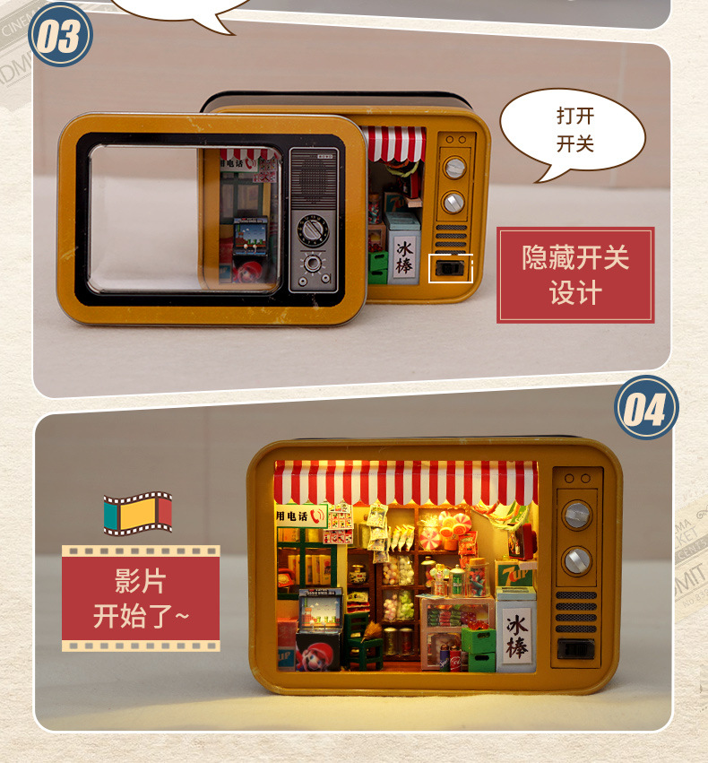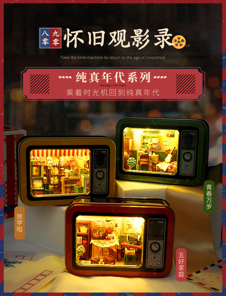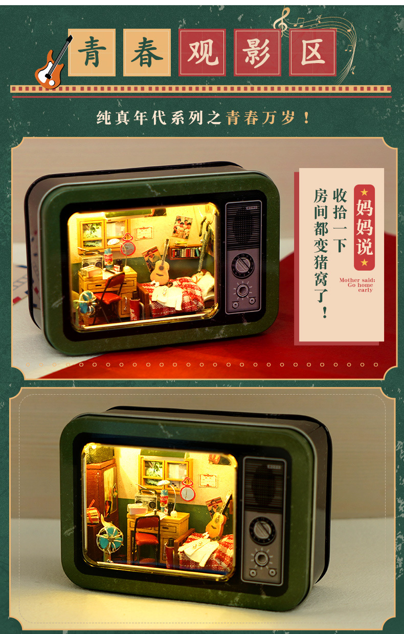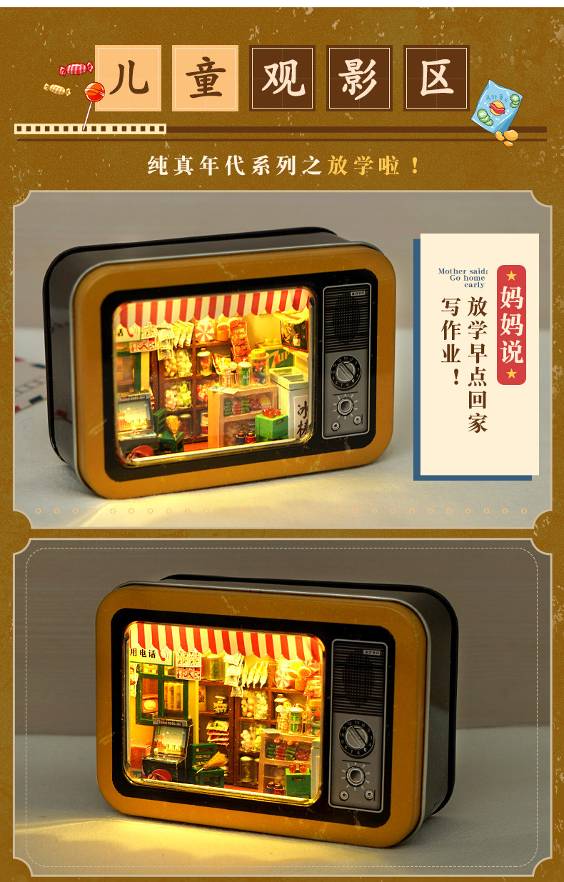 DIY 수제 오두막 조립 철제 상자 어린 시절 추억 향수 복고풍 창의적인 생일 선물 건축 모형스토어 가기