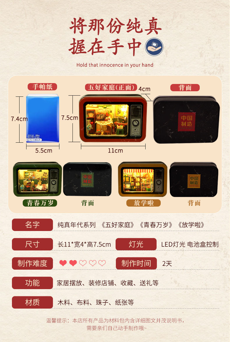 DIY 수제 오두막 조립 철제 상자 어린 시절 추억 향수 복고풍 창의적인 생일 선물 건축 모형
