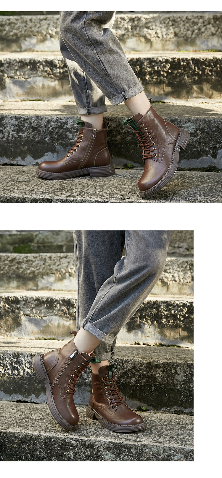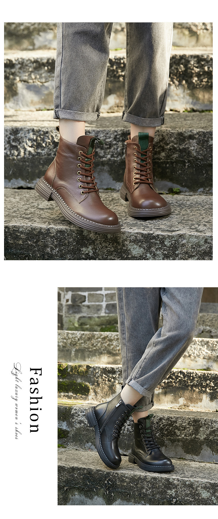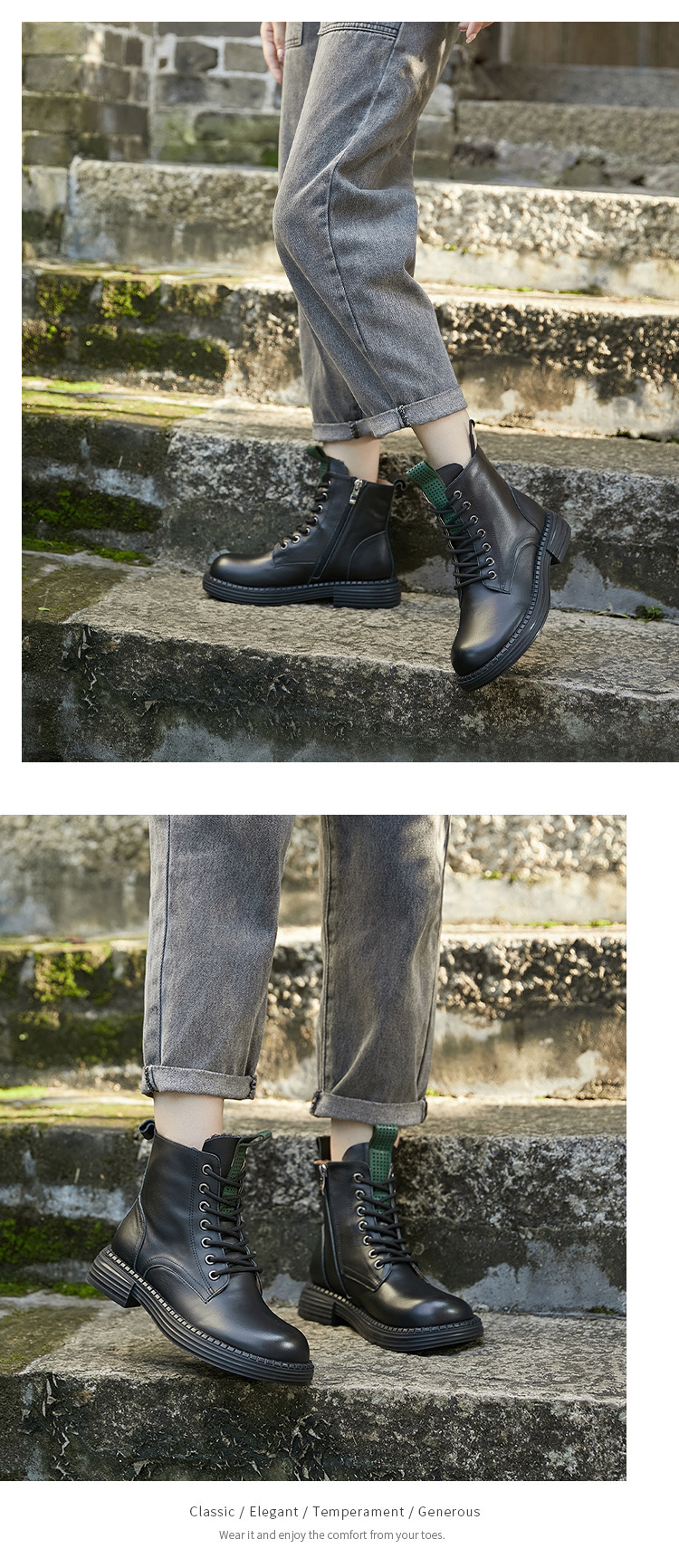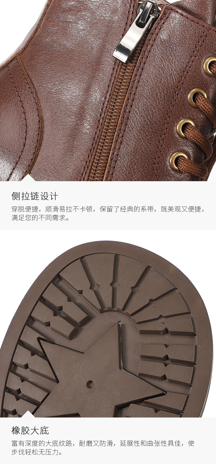 1층 소가죽 마틴 부츠 여성용 두꺼운 밑창 천연 가죽 작업용 짧은 부츠 미끄럼 방지 내마모성 클래식 스타일 사이드 지퍼 레트로 여성 부츠스토어 가기