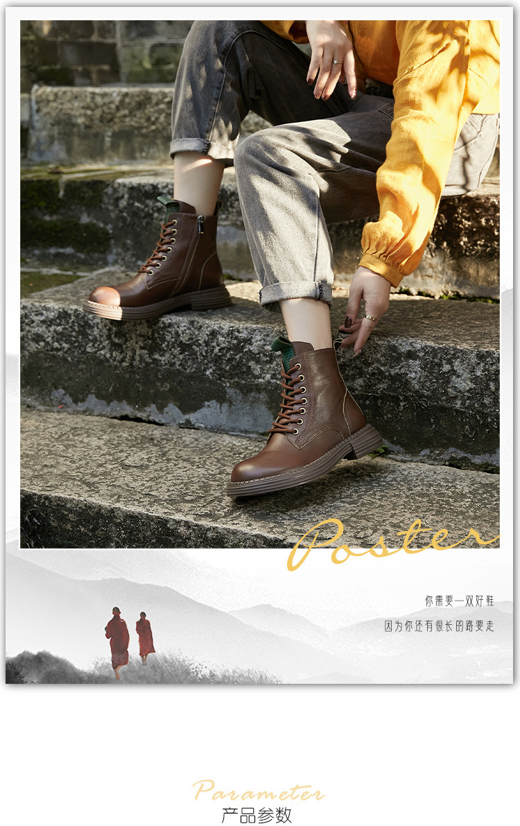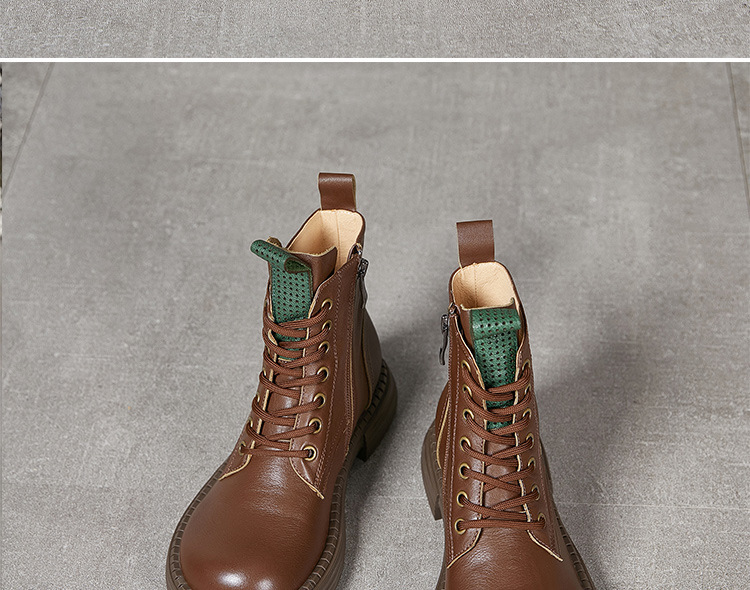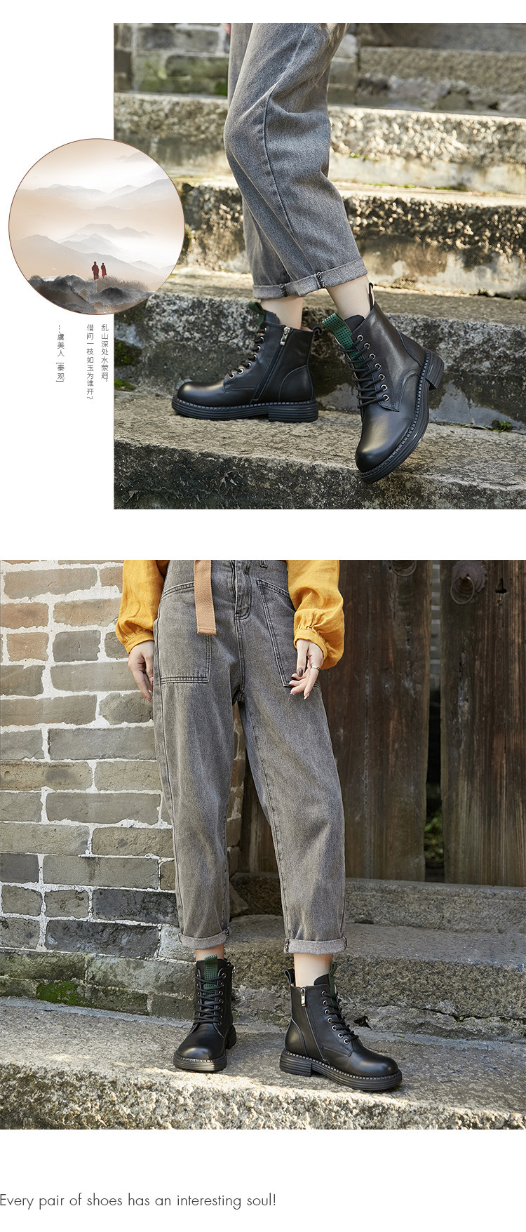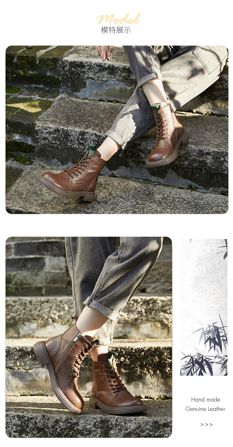1층 소가죽 마틴 부츠 여성용 두꺼운 밑창 천연 가죽 작업용 짧은 부츠 미끄럼 방지 내마모성 클래식 스타일 사이드 지퍼 레트로 여성 부츠스토어 가기