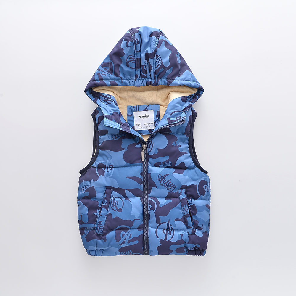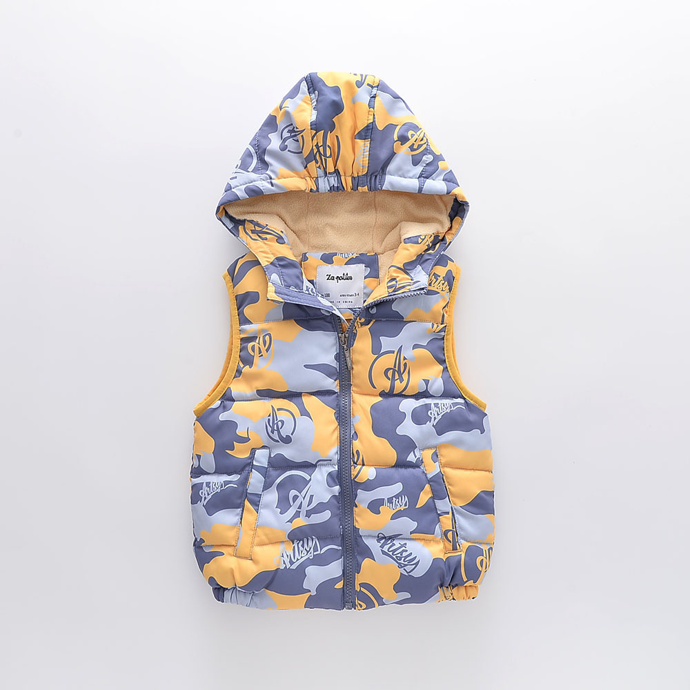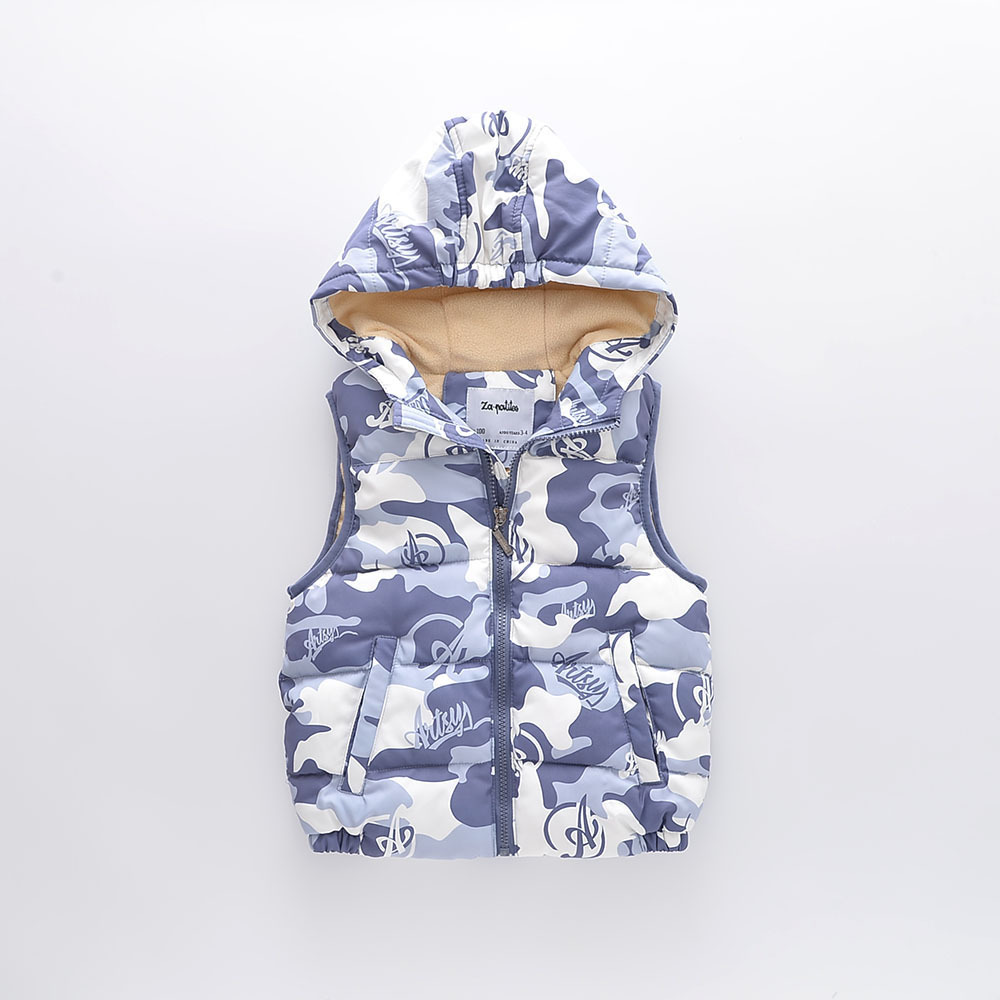 2024冬季新款 迷彩字母印花 男童加绒加厚连帽马甲背心