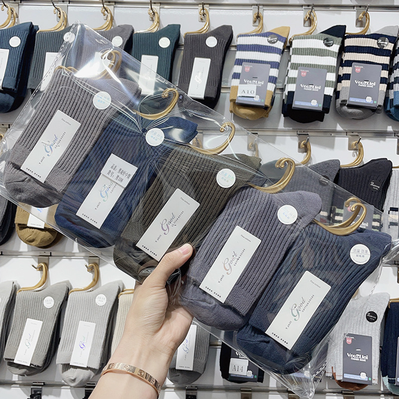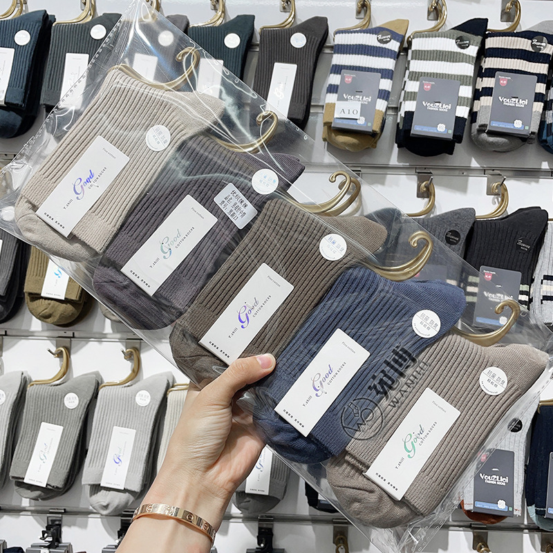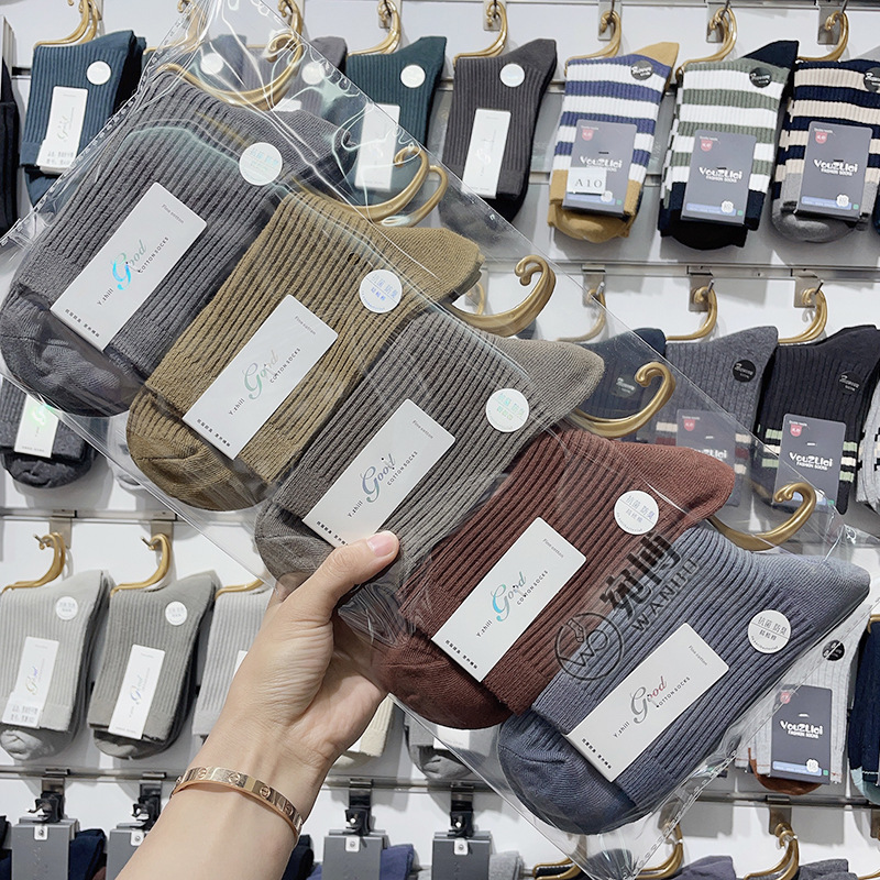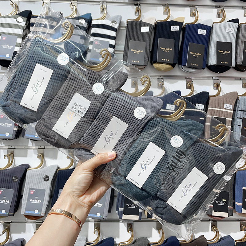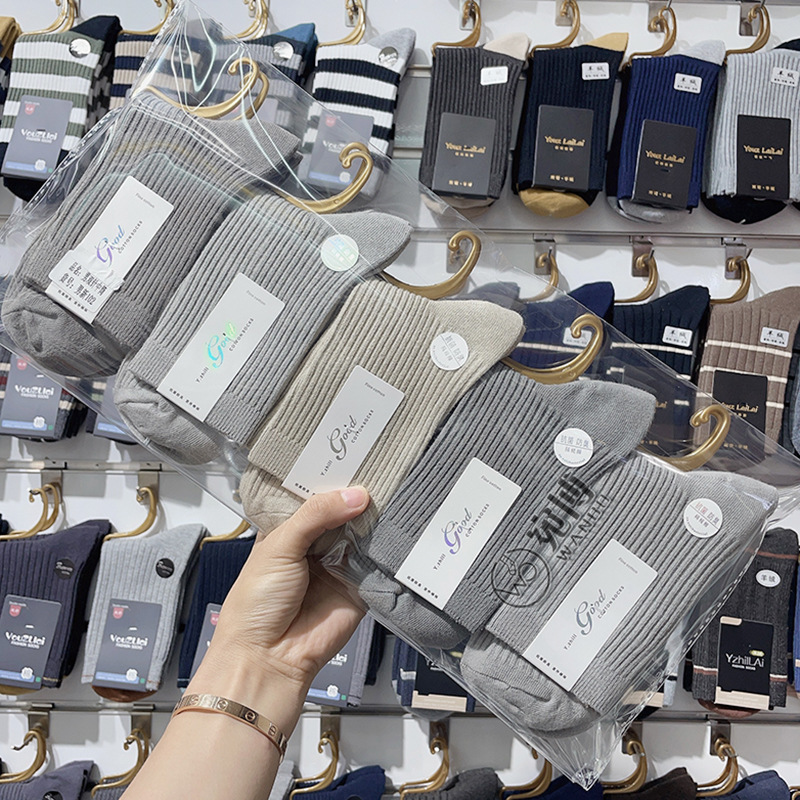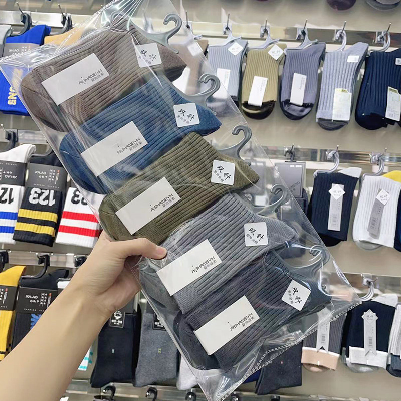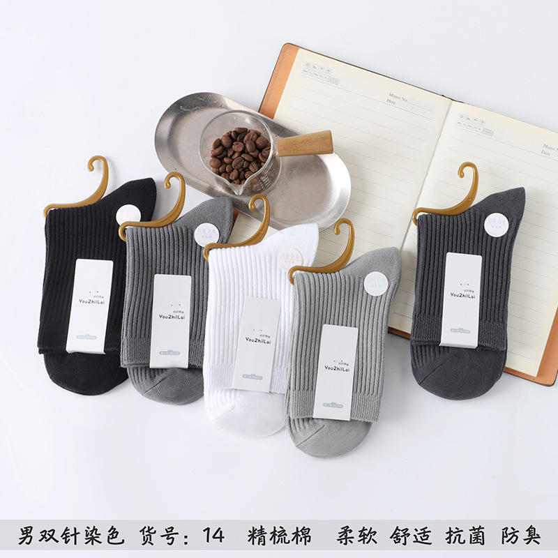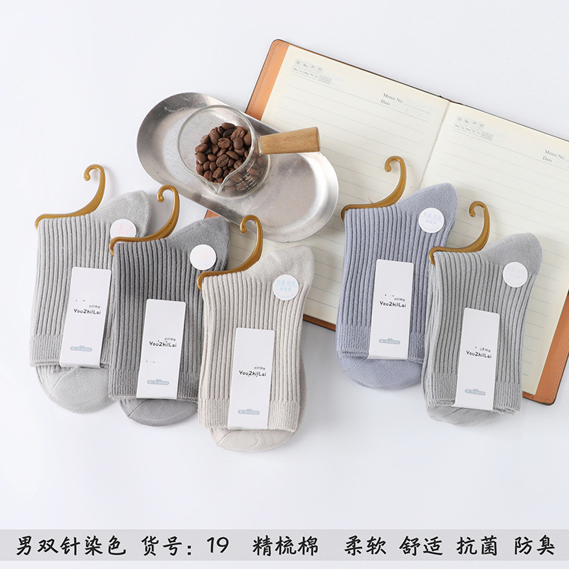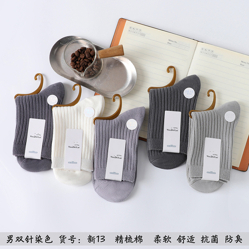 가을과 겨울 더블 바늘 남성용 튜브 양말 단색면 양말 남성용 도매 코튼 단색 빗질면 하이 튜브 남성용 양말 시장스토어 가기