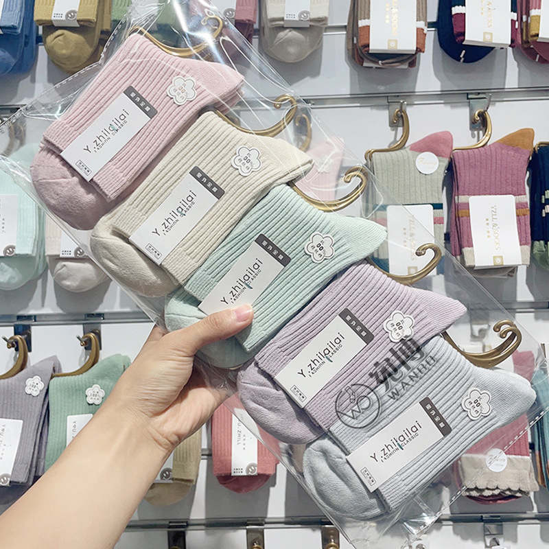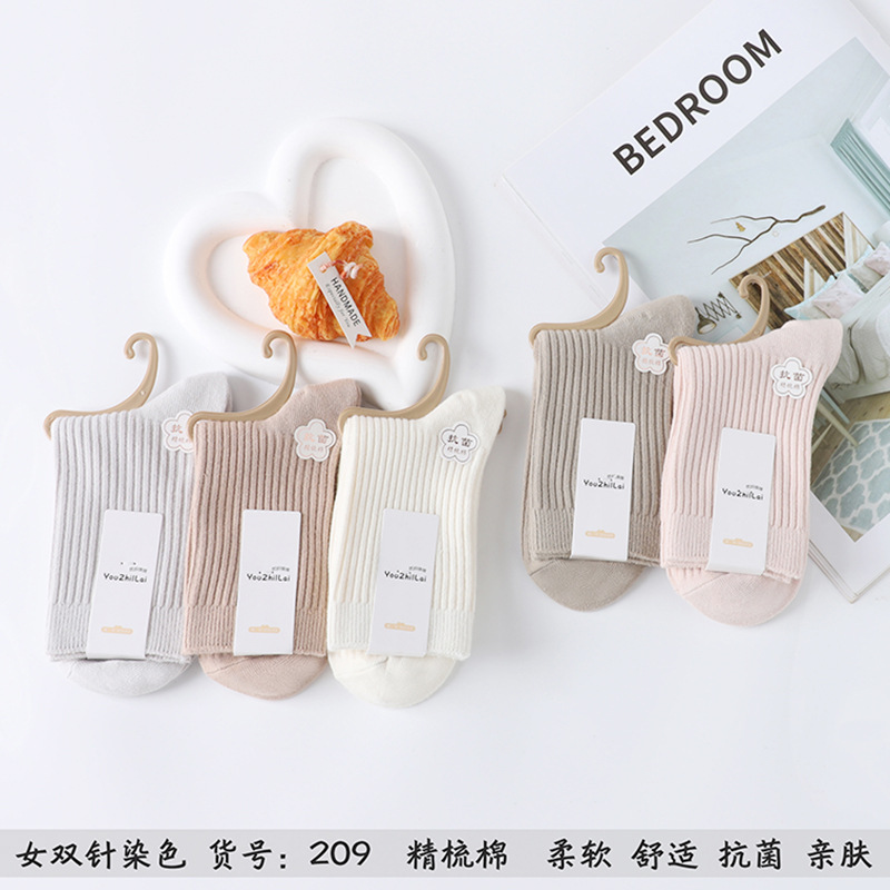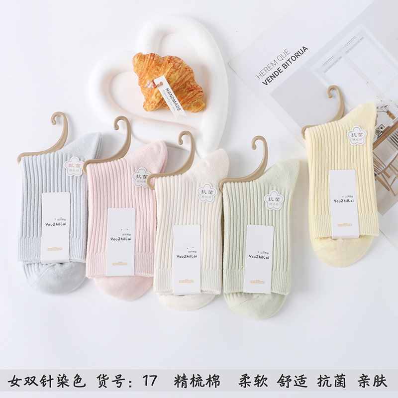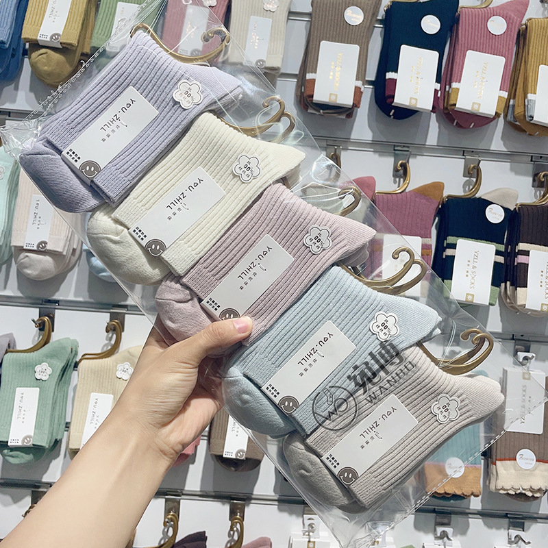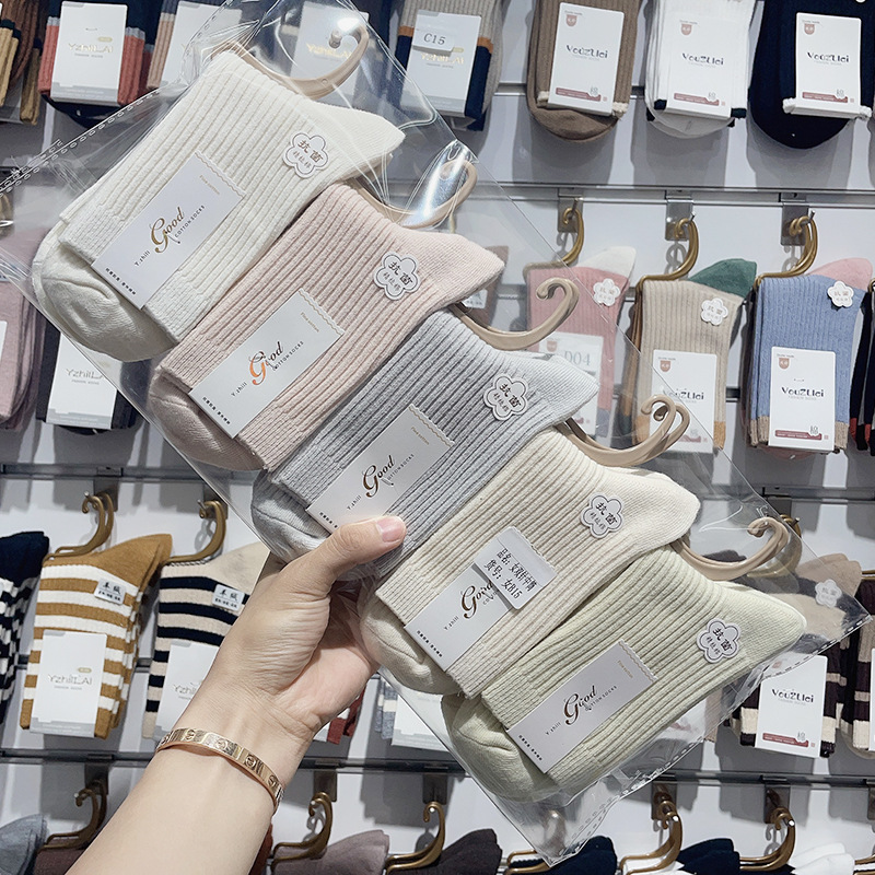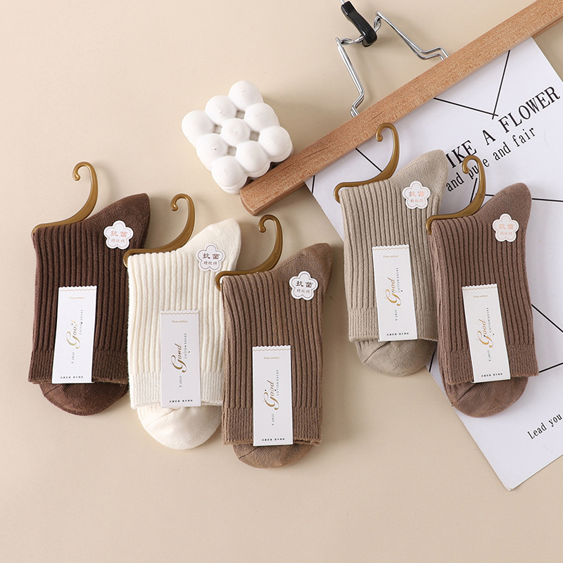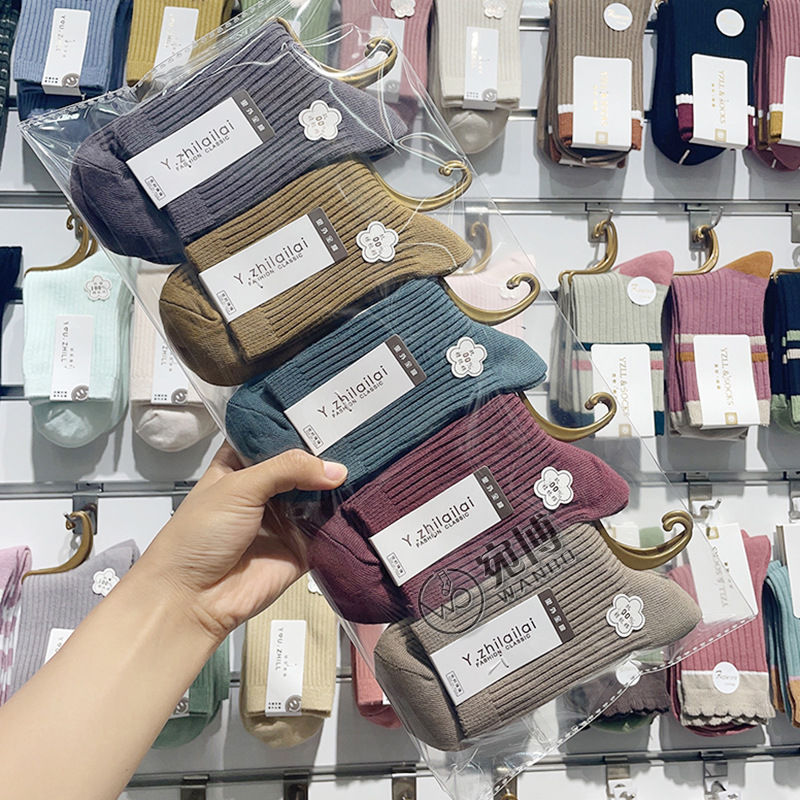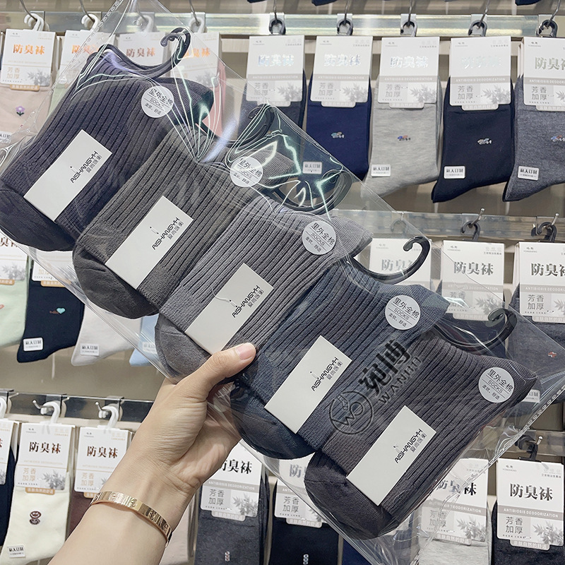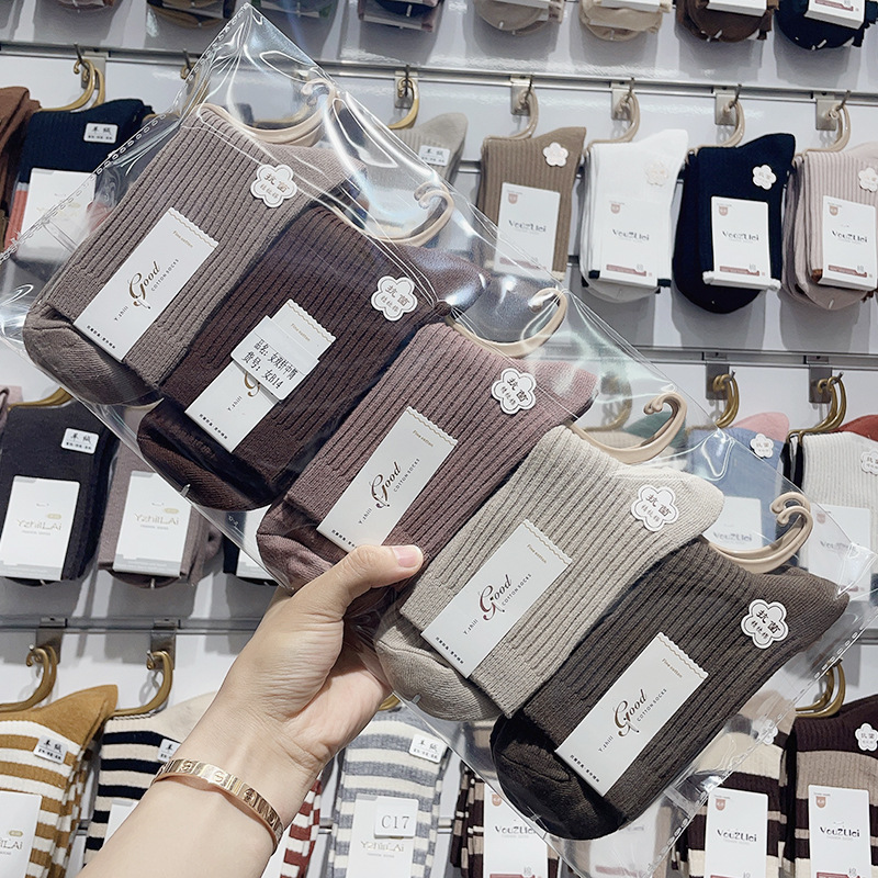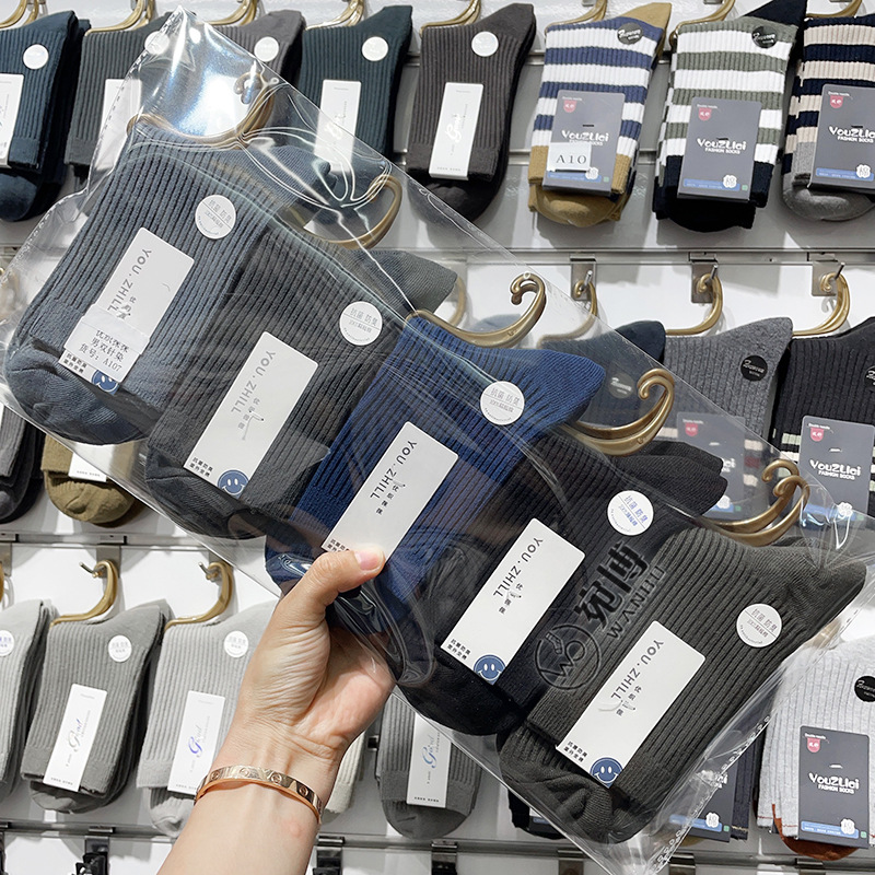 가을과 겨울 더블 바늘 남성용 튜브 양말 단색면 양말 남성용 도매 코튼 단색 빗질면 하이 튜브 남성용 양말 시장스토어 가기