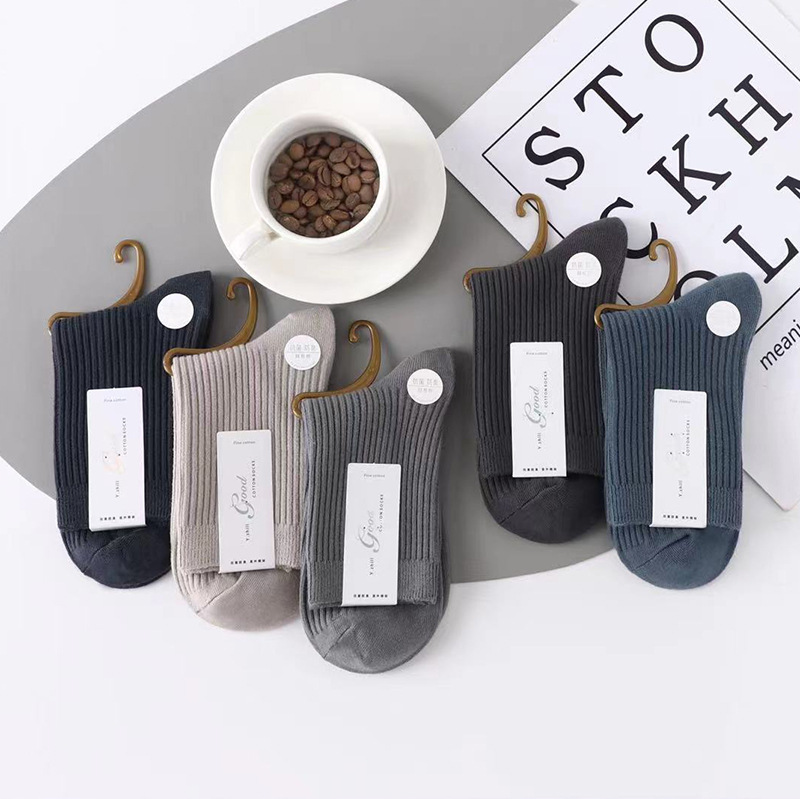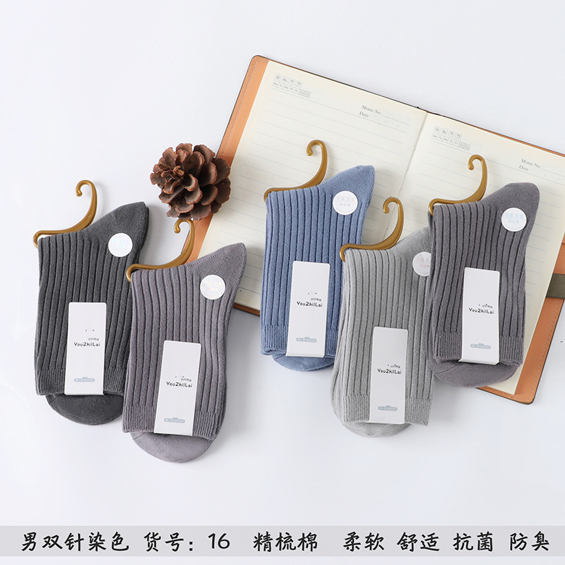 가을과 겨울 더블 바늘 남성용 튜브 양말 단색면 양말 남성용 도매 코튼 단색 빗질면 하이 튜브 남성용 양말 시장