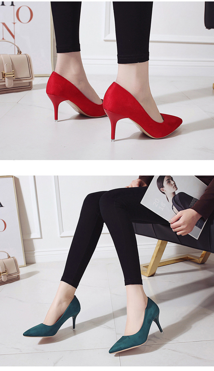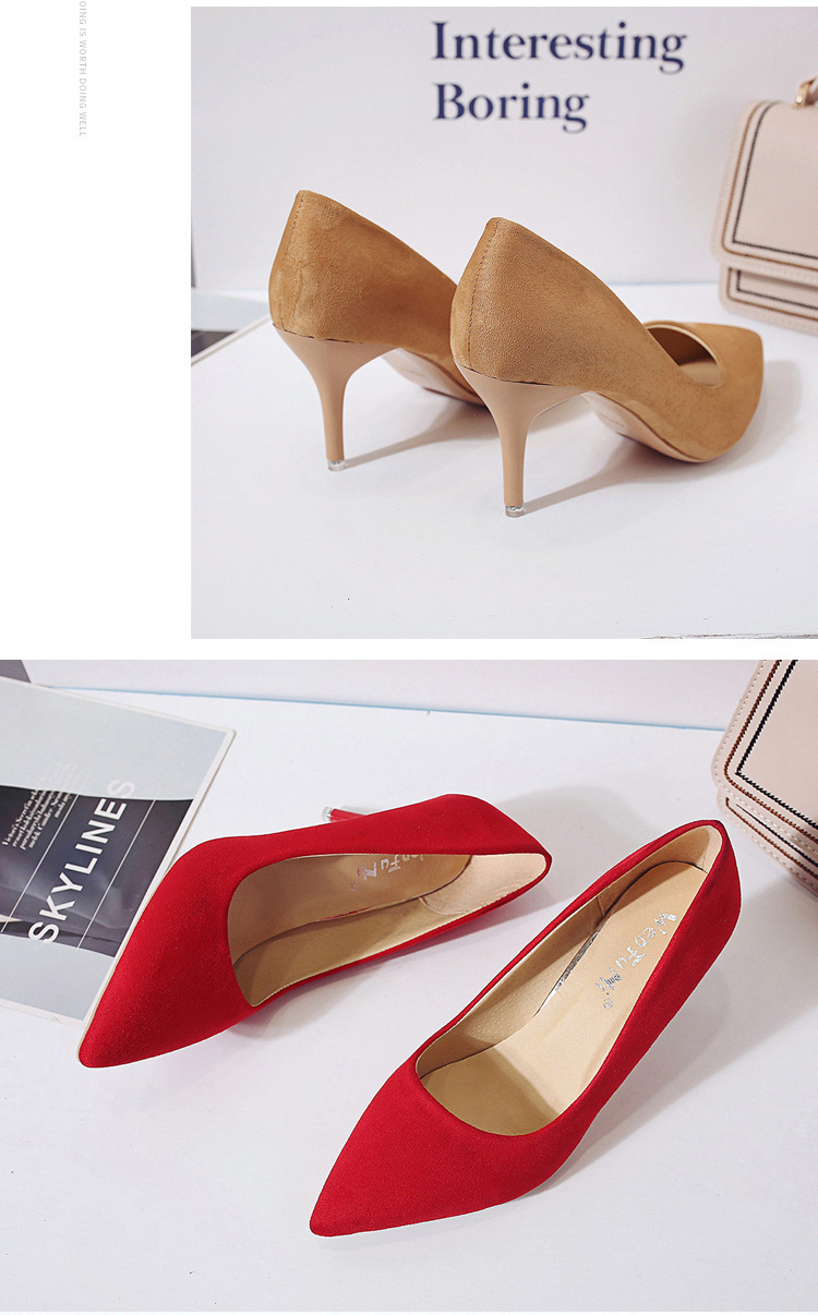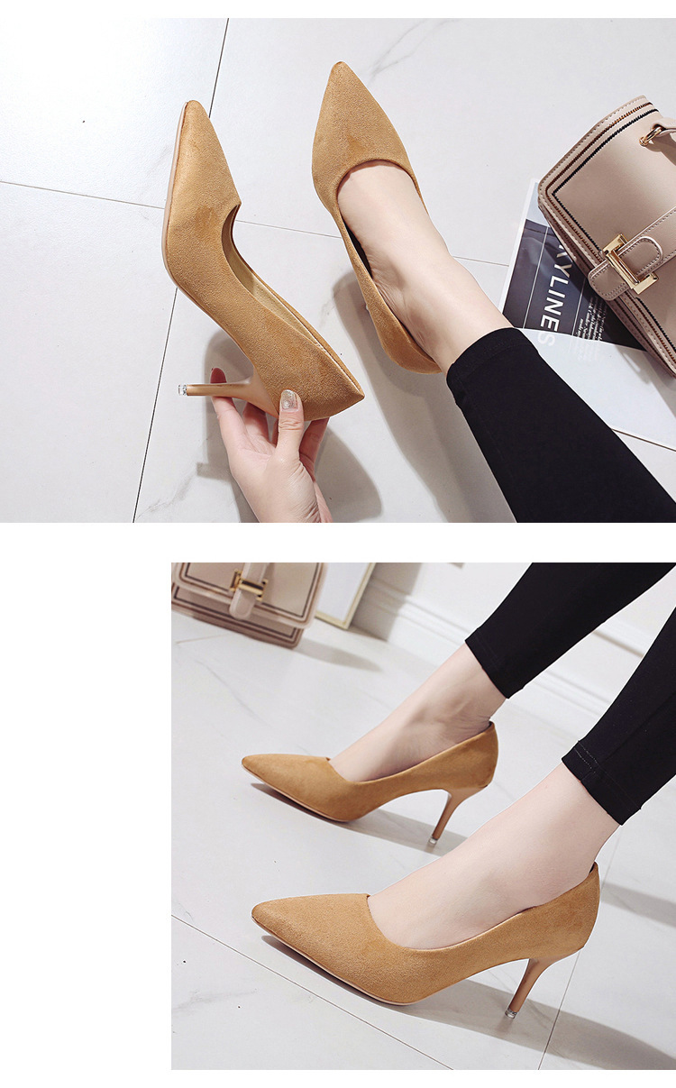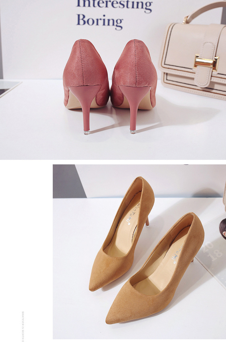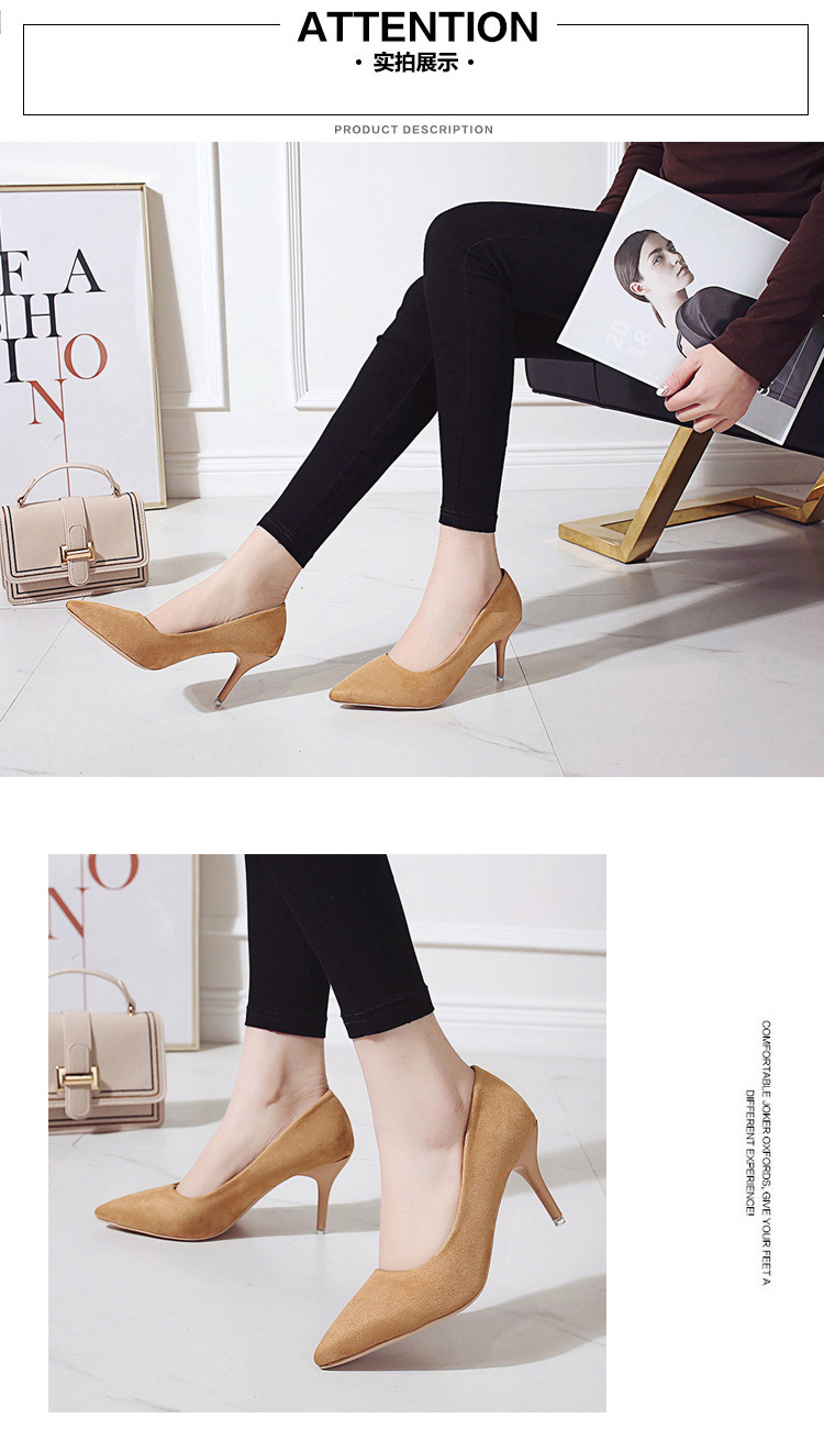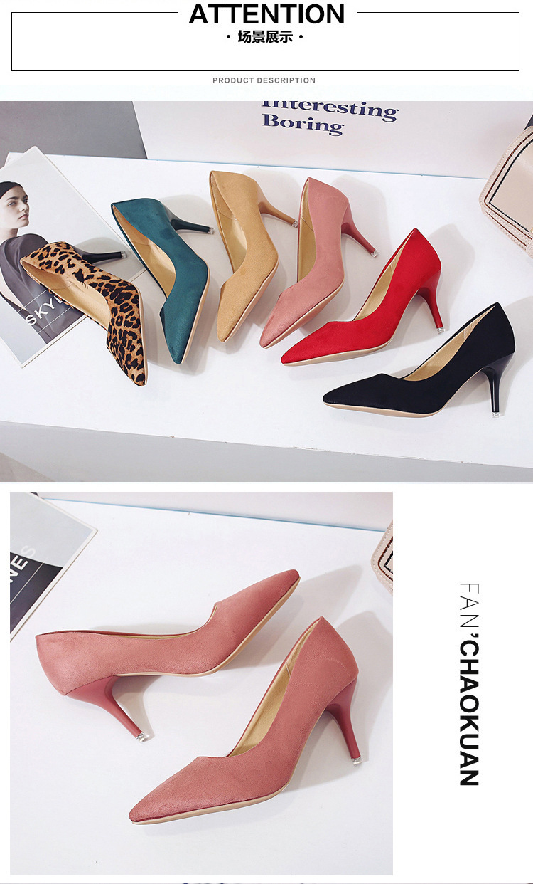 2021 봄 뾰족한 얇은 뒤꿈치 하이힐 스웨이드 신발 유럽과 미국 대외 무역 플러스 사이즈 44 슬림 여성 신발 제조 업체 도매스토어 가기