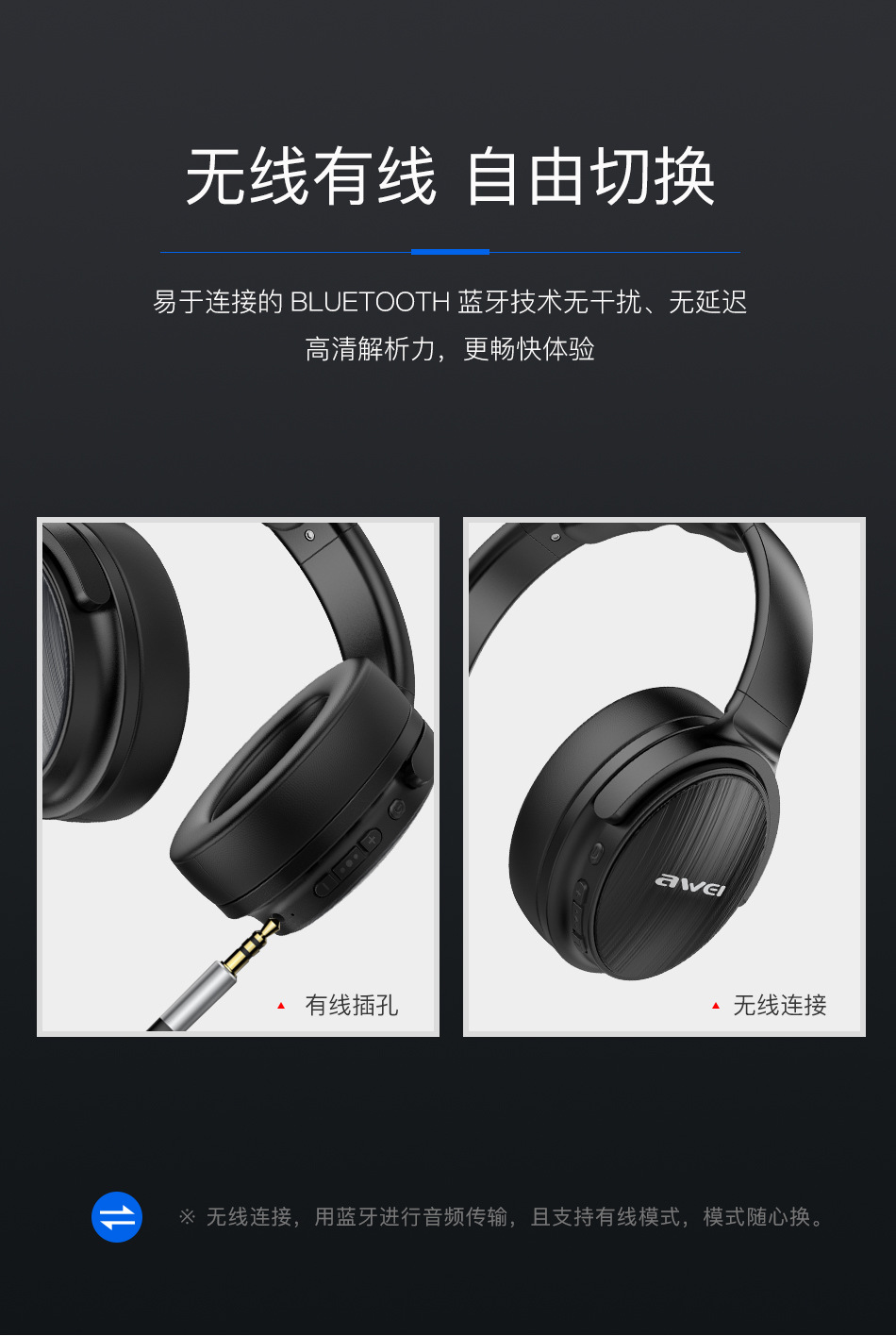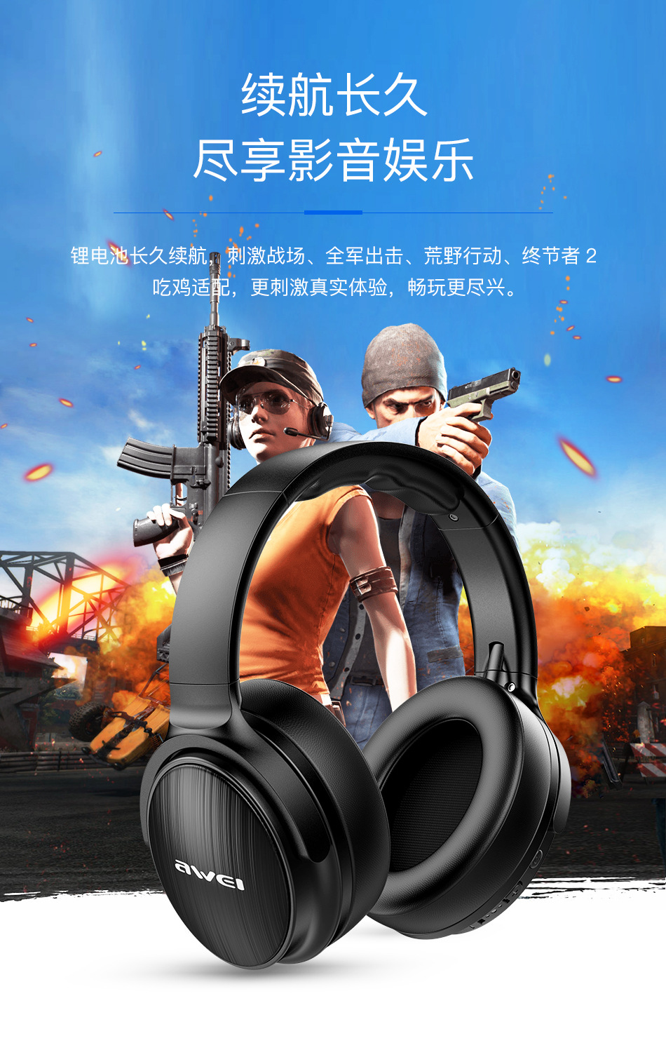 국경을 넘는 맞춤형 헤드셋 블루투스 게이밍 헤드폰, 접이식 40mm 드라이버, 개인 맞춤형 무선 컴퓨터용 대형 헤드폰스토어 가기