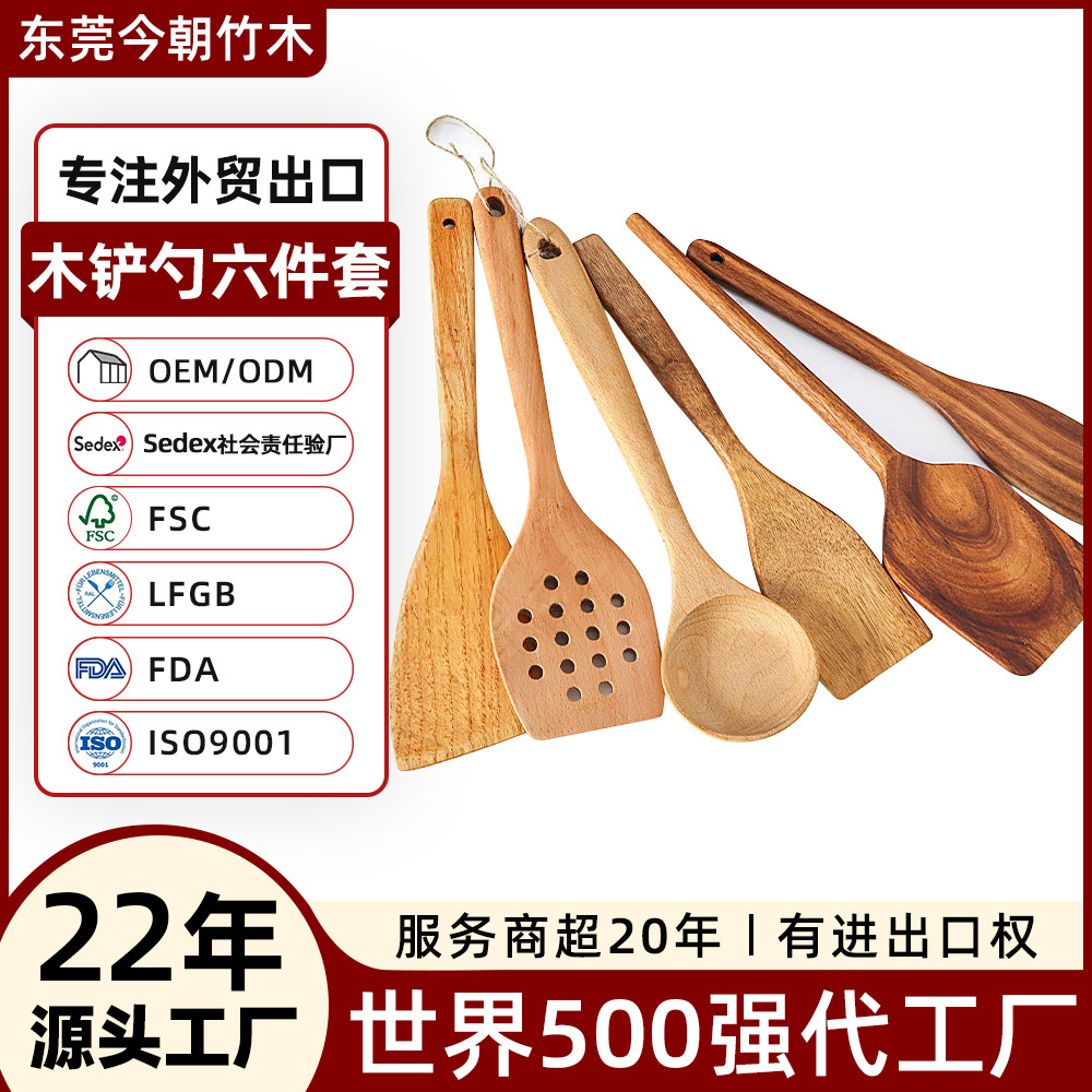 동관 외국 무역 공장 맞춤형 목재 조리 도구 나무 주걱 붙지 않는 나무 주걱 단단한 나무 주걱 숟가락 6 개 세트