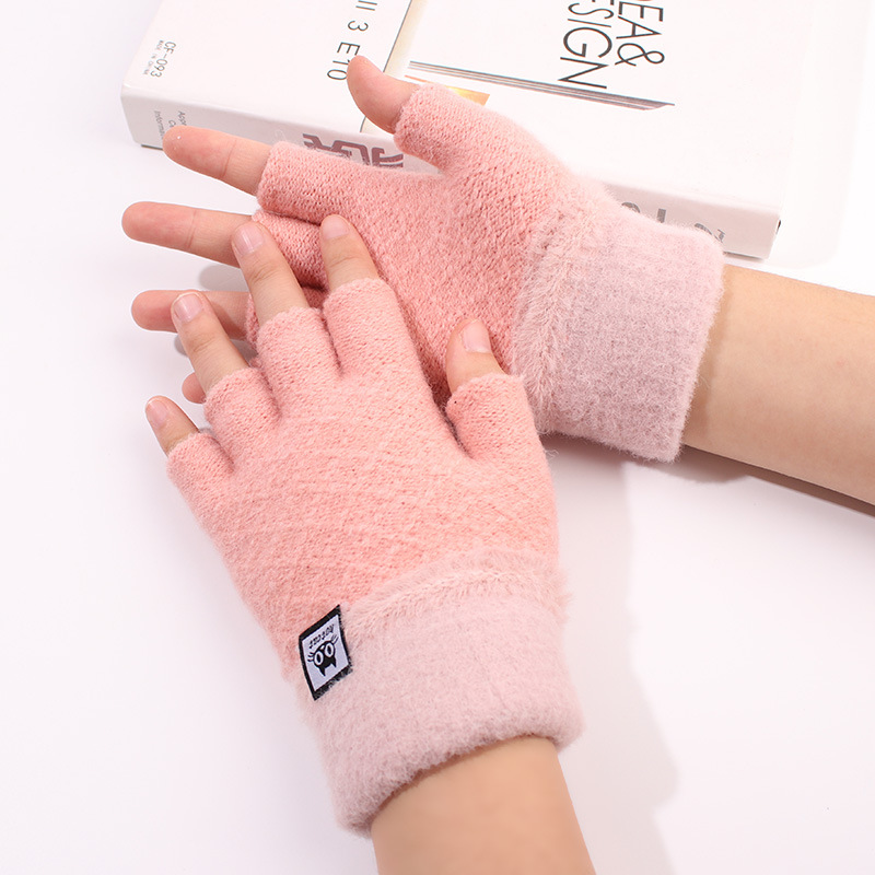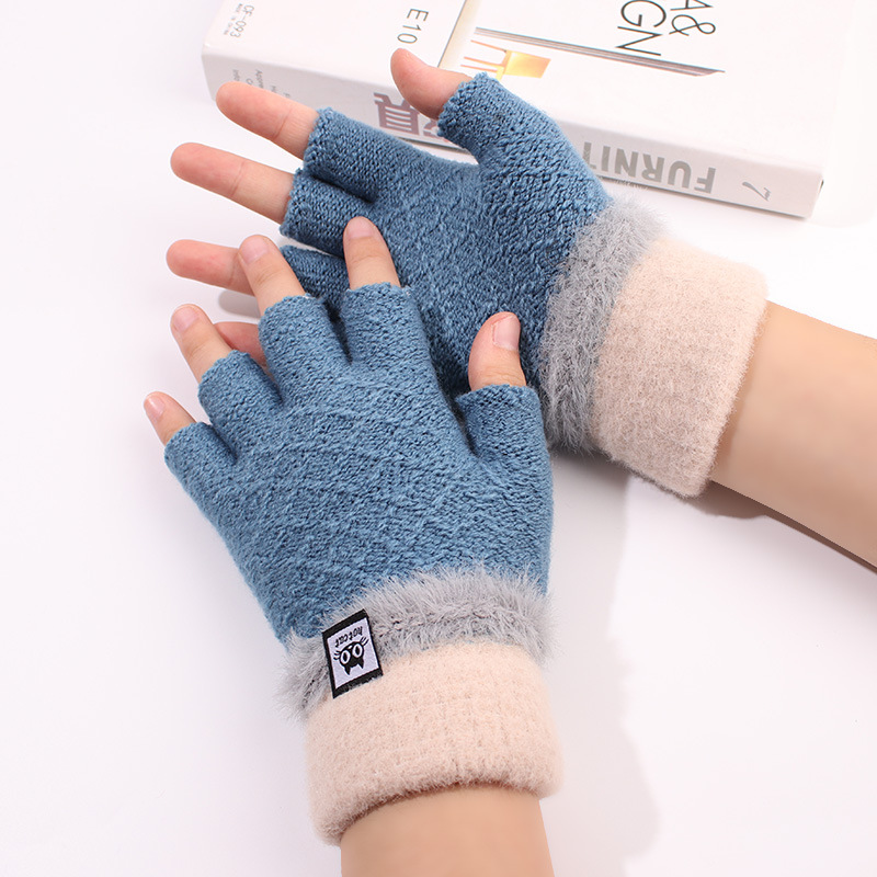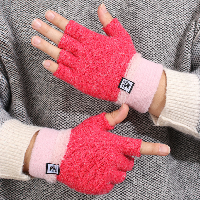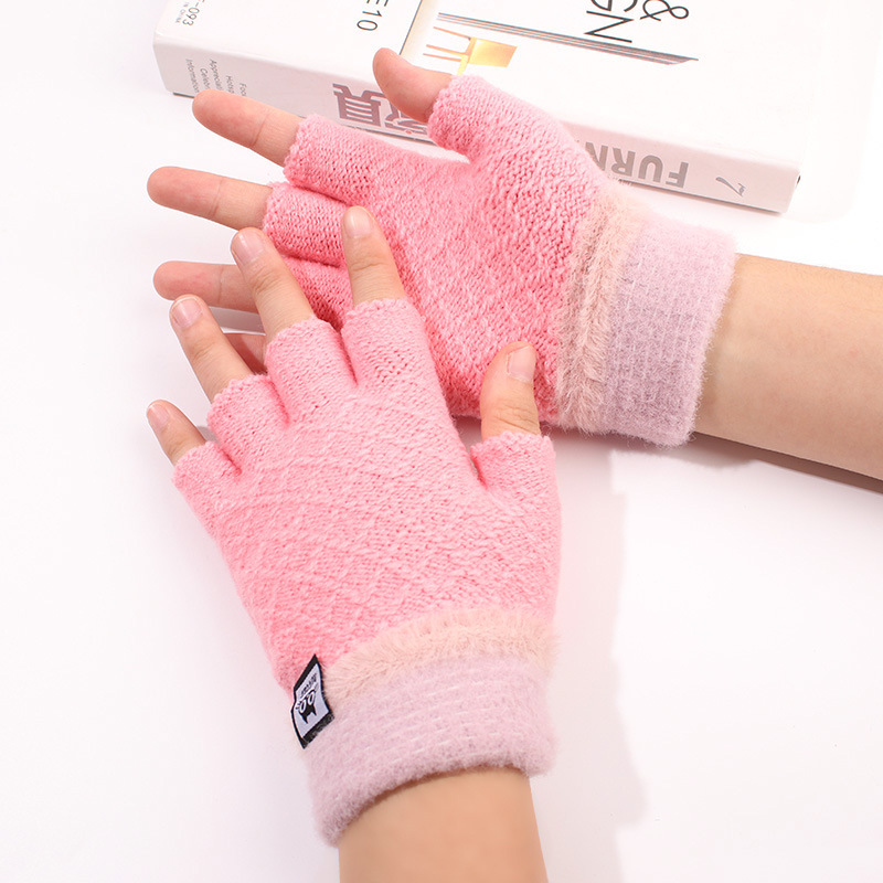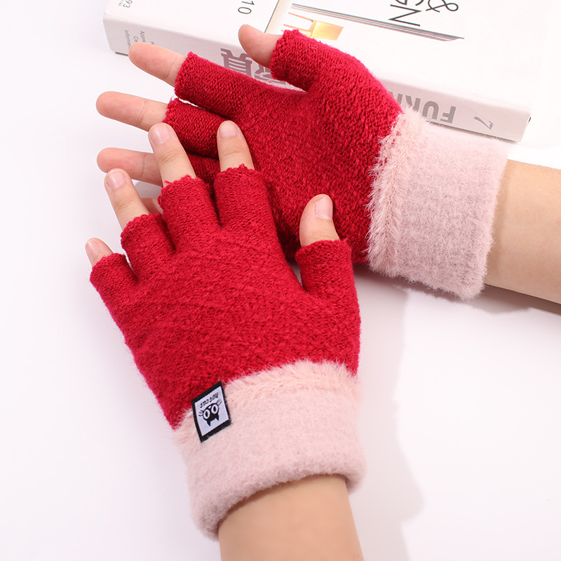 가을과 겨울 장갑 여성용 한국식 따뜻한 니트 울 자카드 오픈 핑거 더블 컬러 울 작성 용 반 손가락 장갑