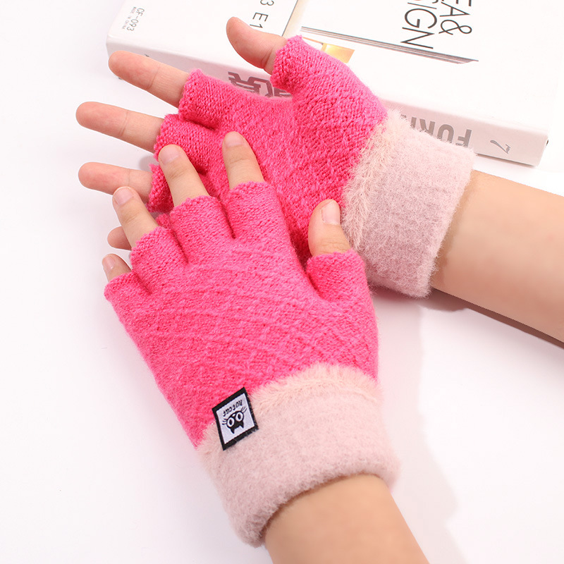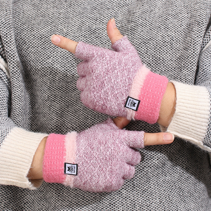 가을과 겨울 장갑 여성용 한국식 따뜻한 니트 울 자카드 오픈 핑거 더블 컬러 울 작성 용 반 손가락 장갑스토어 가기