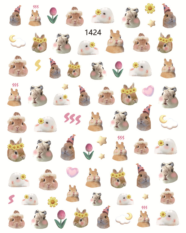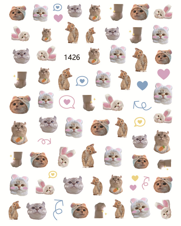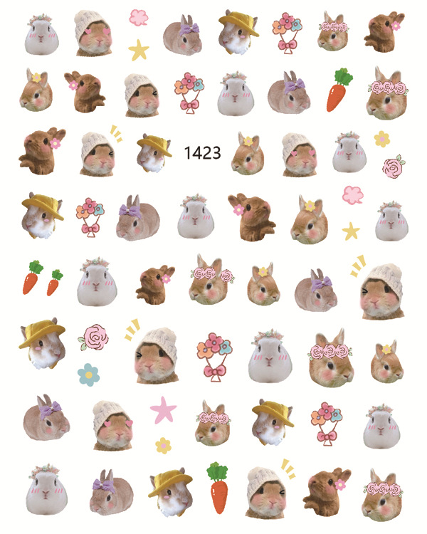 크로스-국경 도매 귀여운 애완 동물 네일 데칼 작은 토끼 강아지 새끼 고양이 네일 스티커 재고