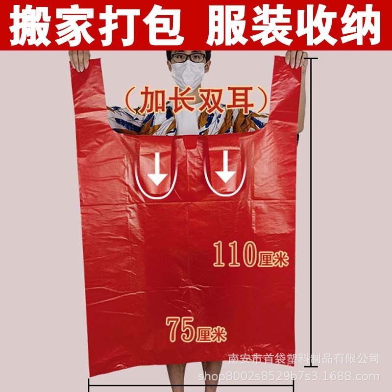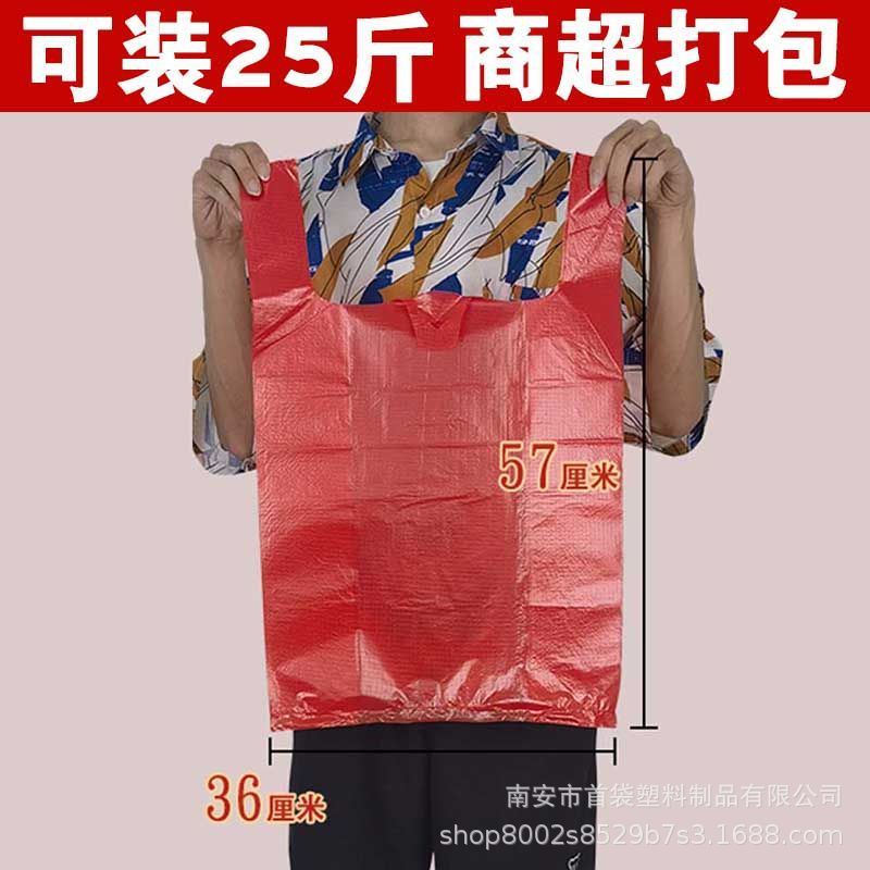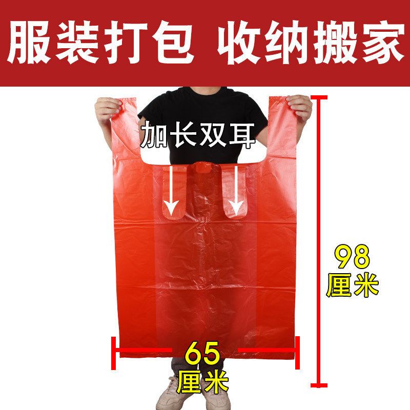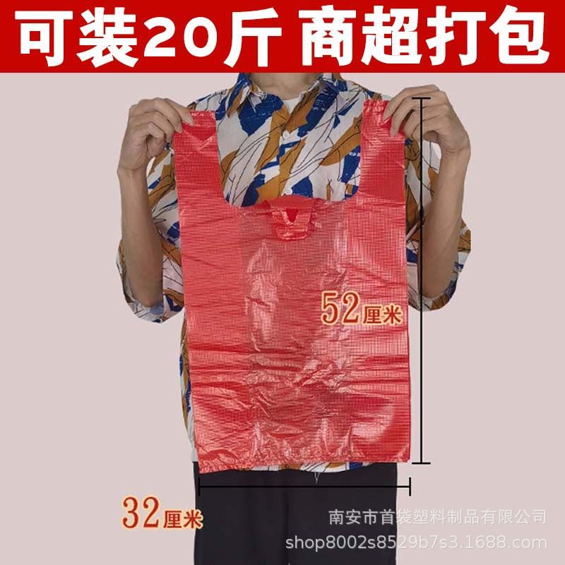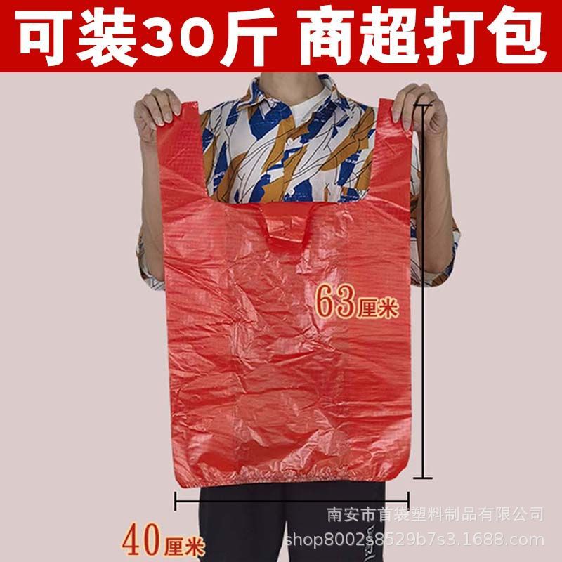 도매 비닐 봉투 무료 배송 대형 빨간색 두꺼운 포장 가방 대형 조끼 편리한 가방 의류 핸드백 가방