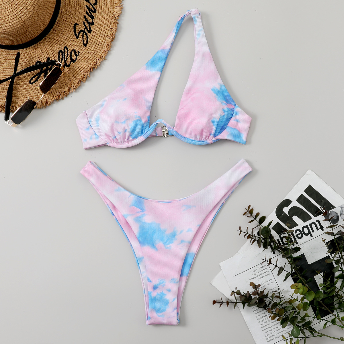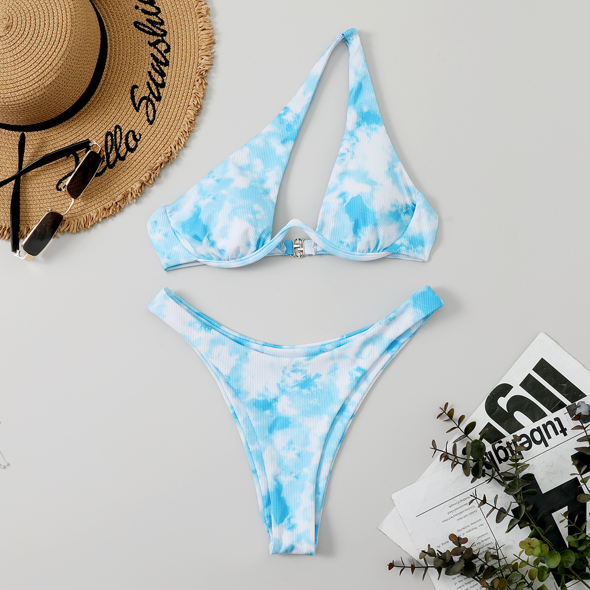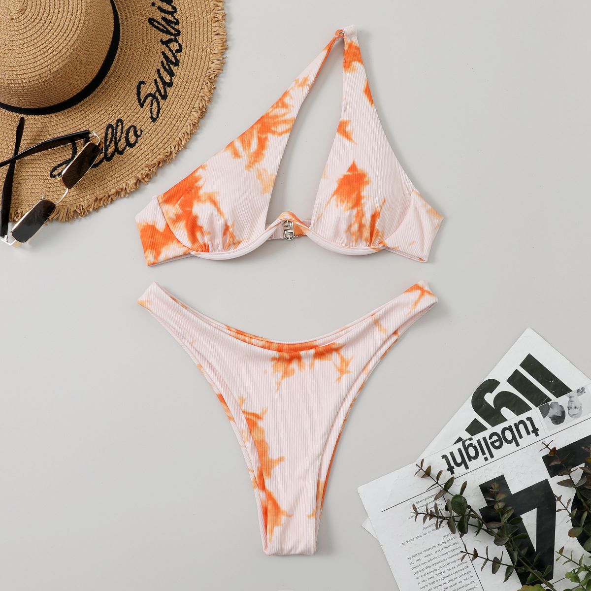 Mingyi 새로운 유럽 및 미국 폭발 멀티 컬러 섹시한 여성용 스플릿 수영복 원 숄더 스틸 BIKINI BIKINI 수영복스토어 가기