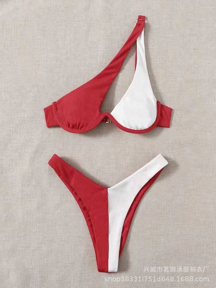Mingyi 새로운 유럽 및 미국 폭발 멀티 컬러 섹시한 여성용 스플릿 수영복 원 숄더 스틸 BIKINI BIKINI 수영복