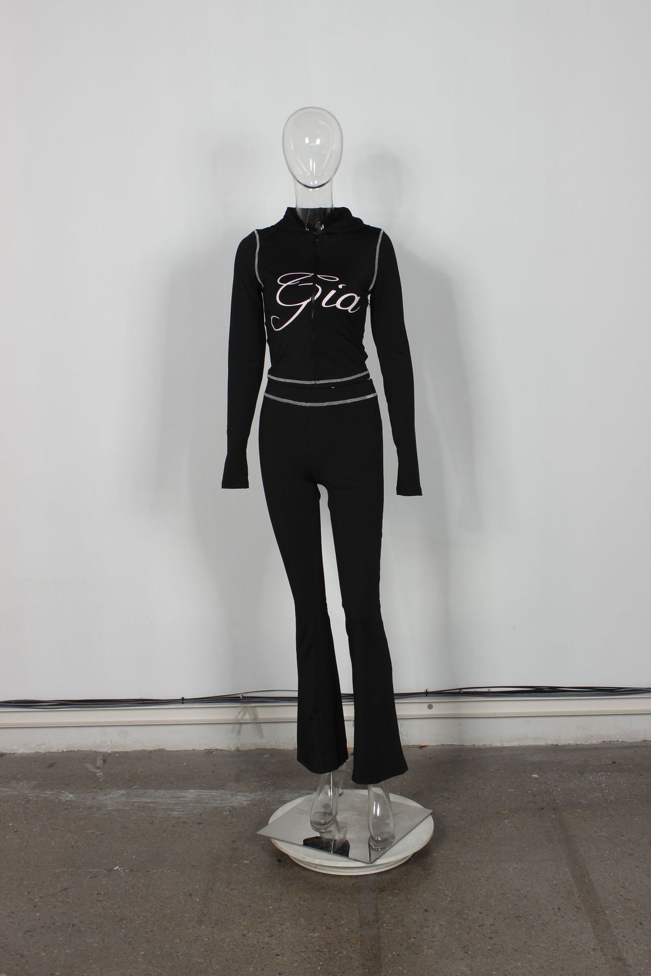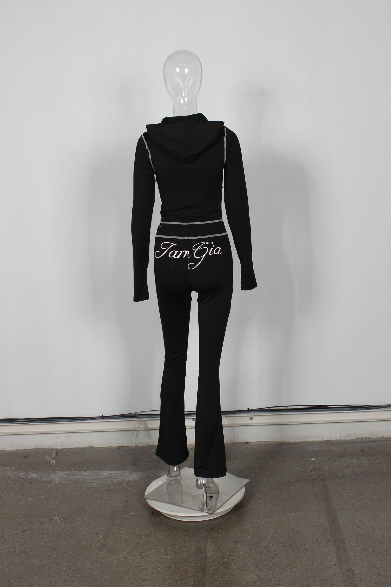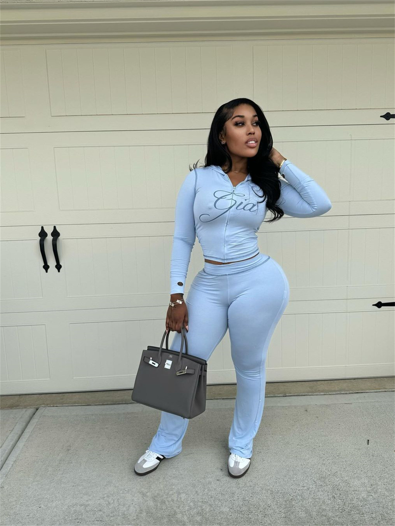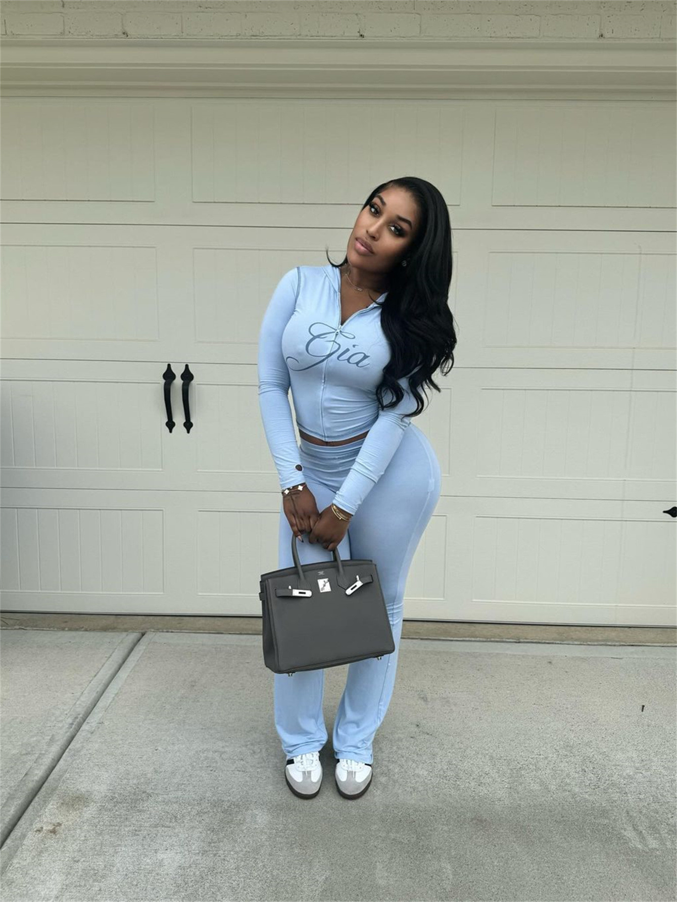 iamgia 유럽 및 미국 트렌디 브랜드 신상 ins 스타일 단색 여성 섹시 숄더라인 밝은 라인 장식 투피스 긴팔 세트