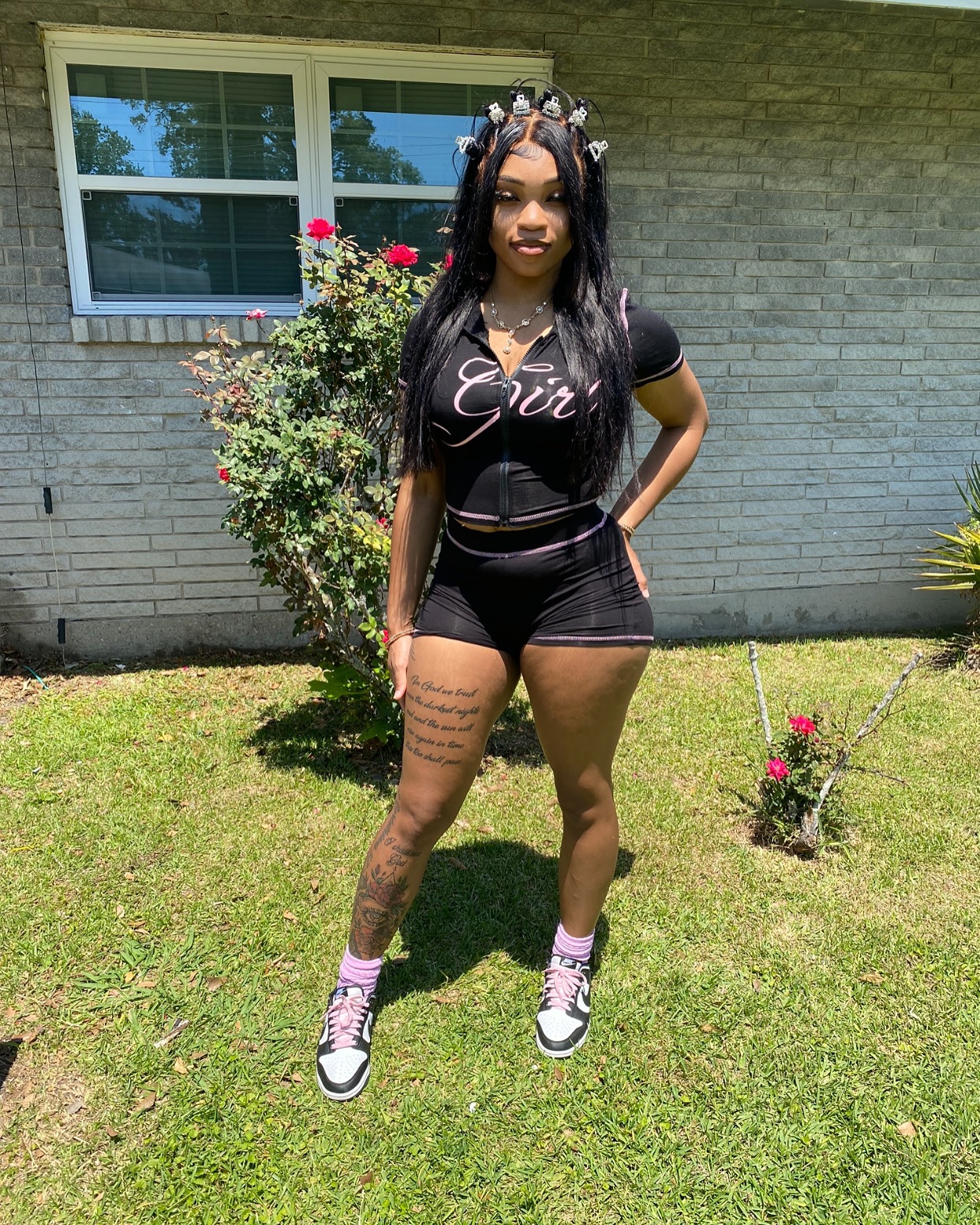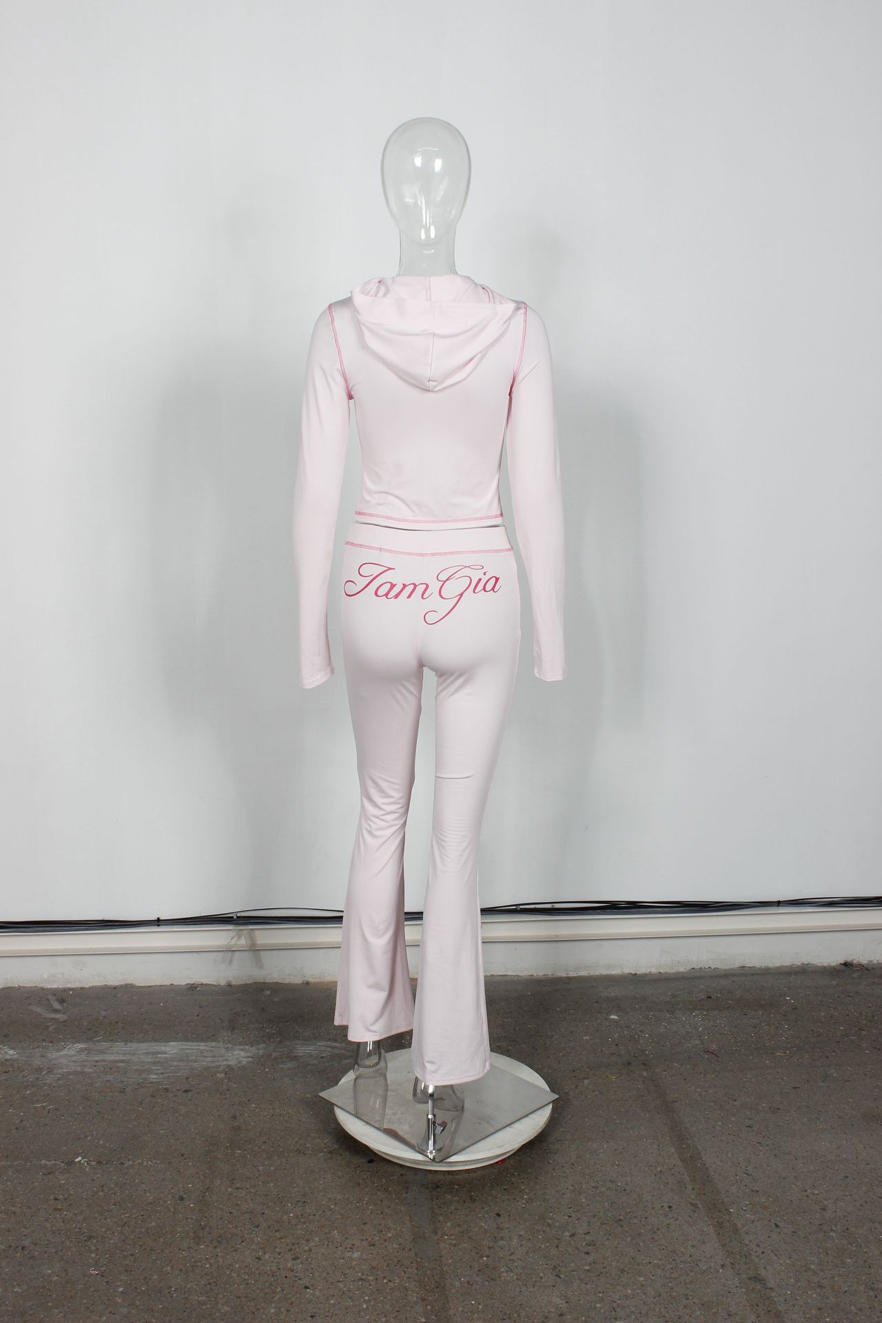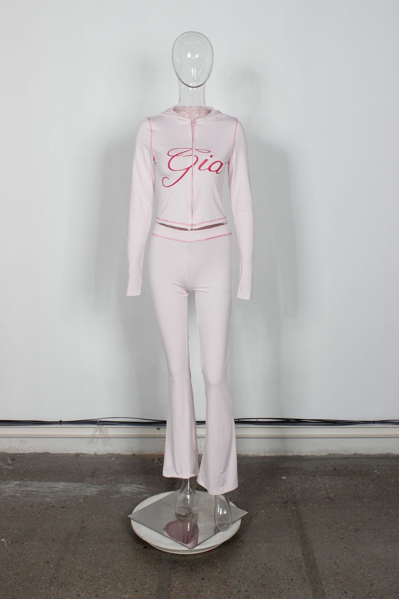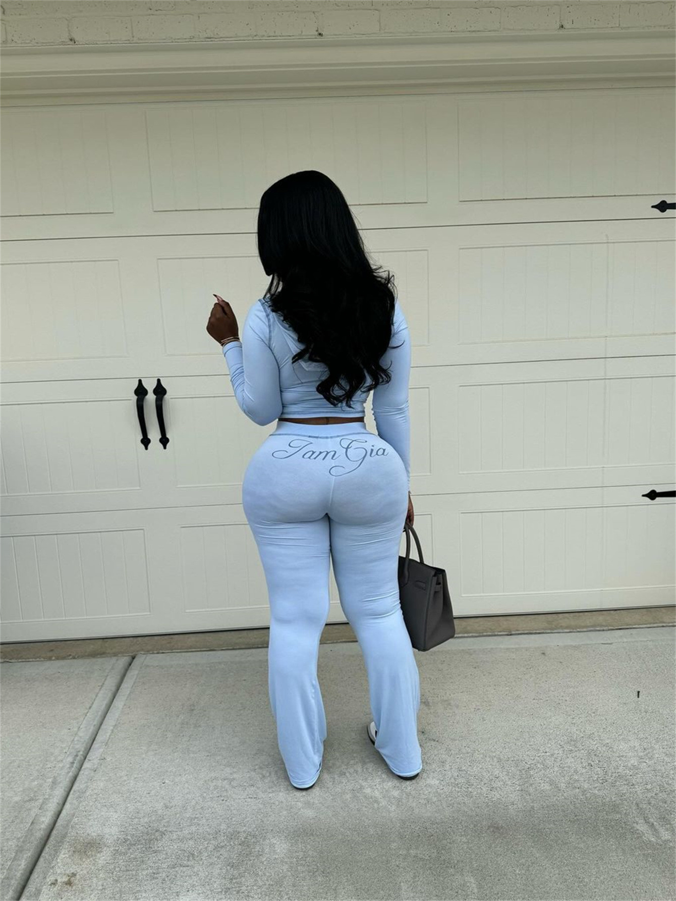 iamgia 유럽 및 미국 트렌디 브랜드 신상 ins 스타일 단색 여성 섹시 숄더라인 밝은 라인 장식 투피스 긴팔 세트