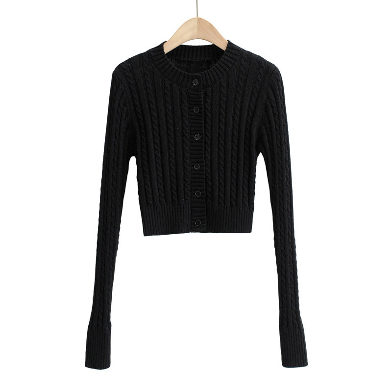 YPFF 새로운 유럽과 미국 스타일 단색 라운드 넥 트위스트 짠 싱글 브레스트 니트 긴 소매 작은 카디건 재킷 탑 여성