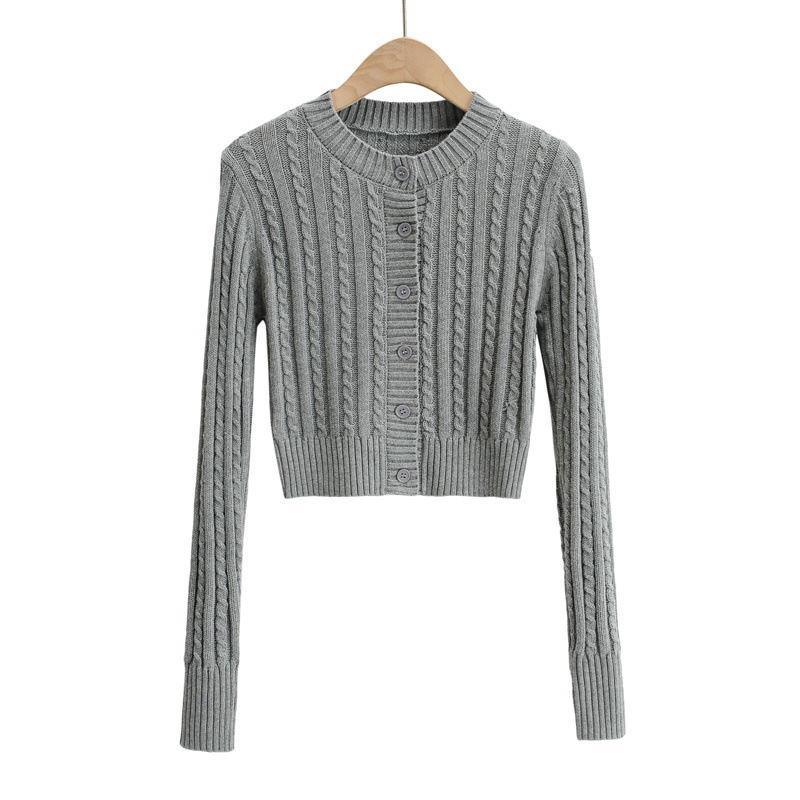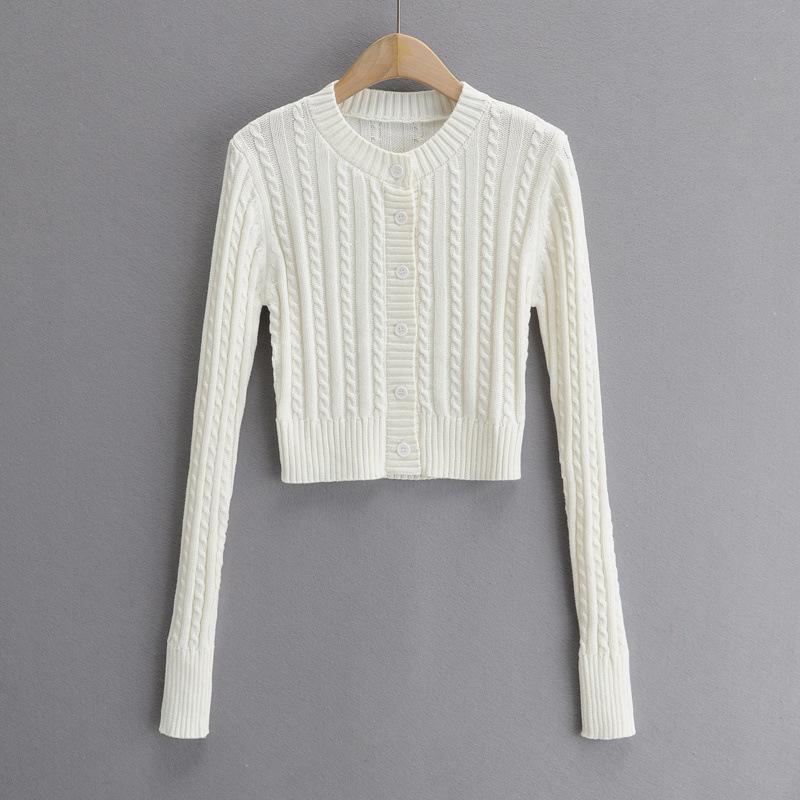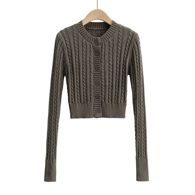 YPFF 새로운 유럽과 미국 스타일 단색 라운드 넥 트위스트 짠 싱글 브레스트 니트 긴 소매 작은 카디건 재킷 탑 여성스토어 가기