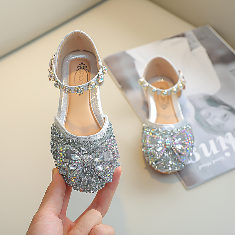 여자 공주 신발 61 성능 신발 어린이 Baotou 플랫 신발 여자 샌들 2025 새로운 중대형 어린이 크리스탈 신발