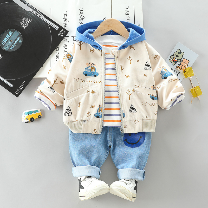 소년 가을 세트 새로운 한국 아동 지퍼 후드 코트 아기 후드 3 종 아동 의류 도매스토어 가기