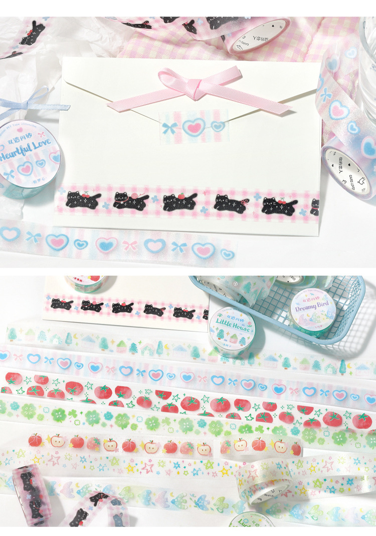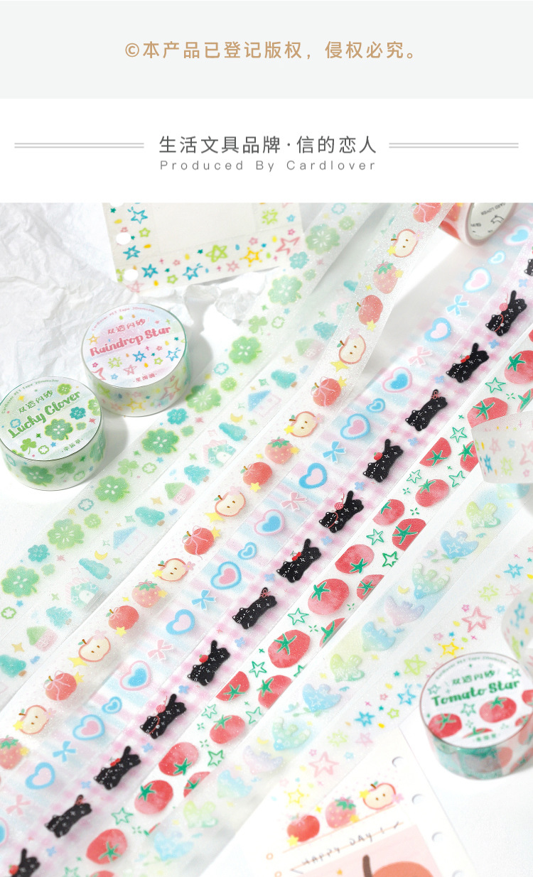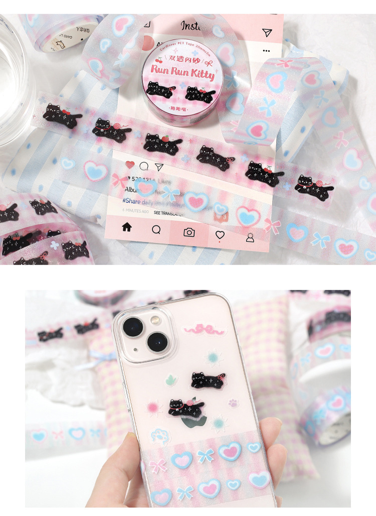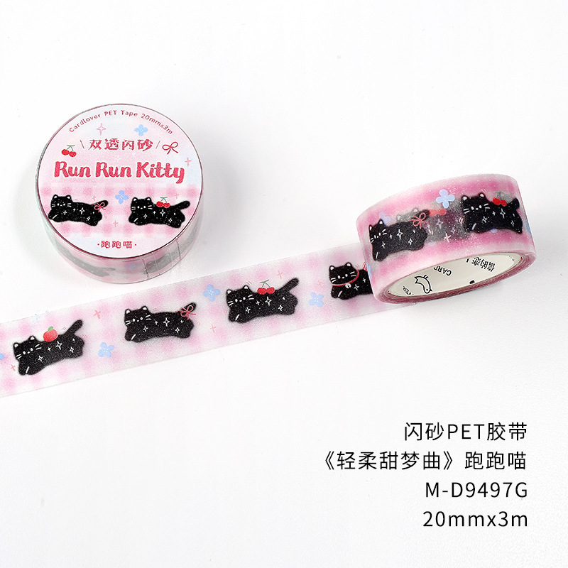 한국 스타일 반짝이 PET 테이프 부드러운 달콤한 꿈의 노래 ins 스타일 귀여운 네잎클로버 고양이 데코레이션스토어 가기