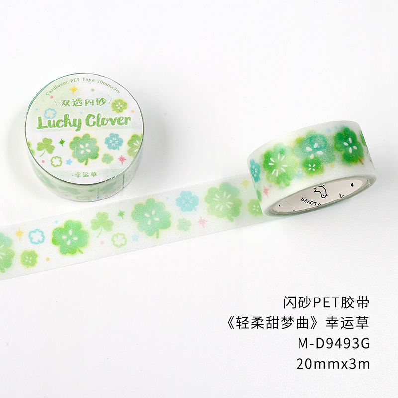 한국 스타일 반짝이 PET 테이프 부드러운 달콤한 꿈의 노래 ins 스타일 귀여운 네잎클로버 고양이 데코레이션