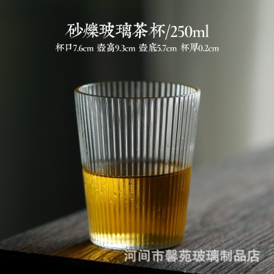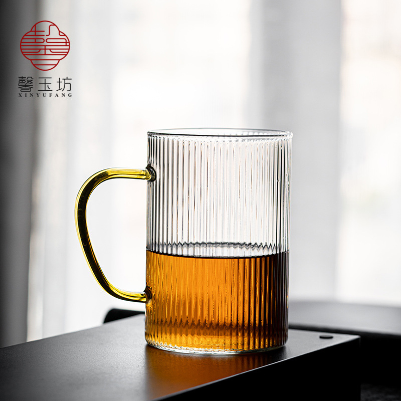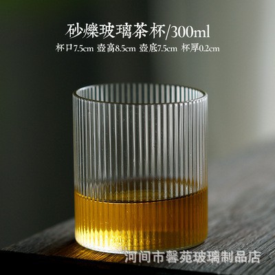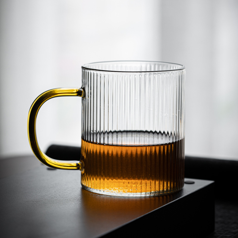 손잡이 그물 빨간 유리 줄무늬 우유 컵 공장 도매 수직 곡물 유리 물 컵 가정용 거품 차 컵 커피 컵