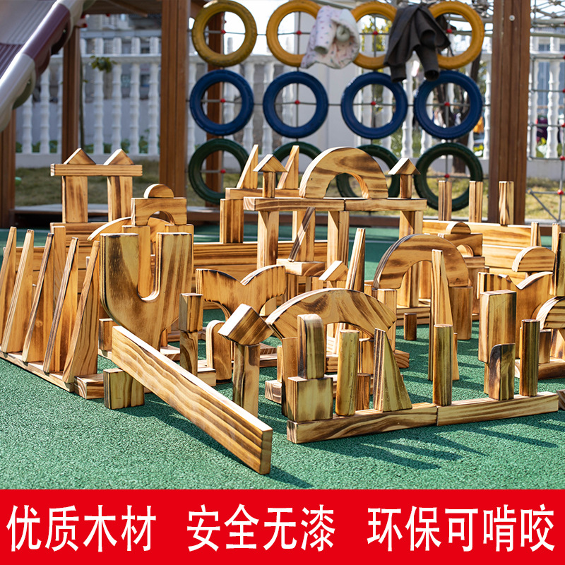 유치원 빌딩 블록 야외 탄화 된 빌딩 블록 대형 빌딩 블록 빌딩 구역 단단한 나무 장난감 어린이 교육 빌딩 블록 타워 빌딩